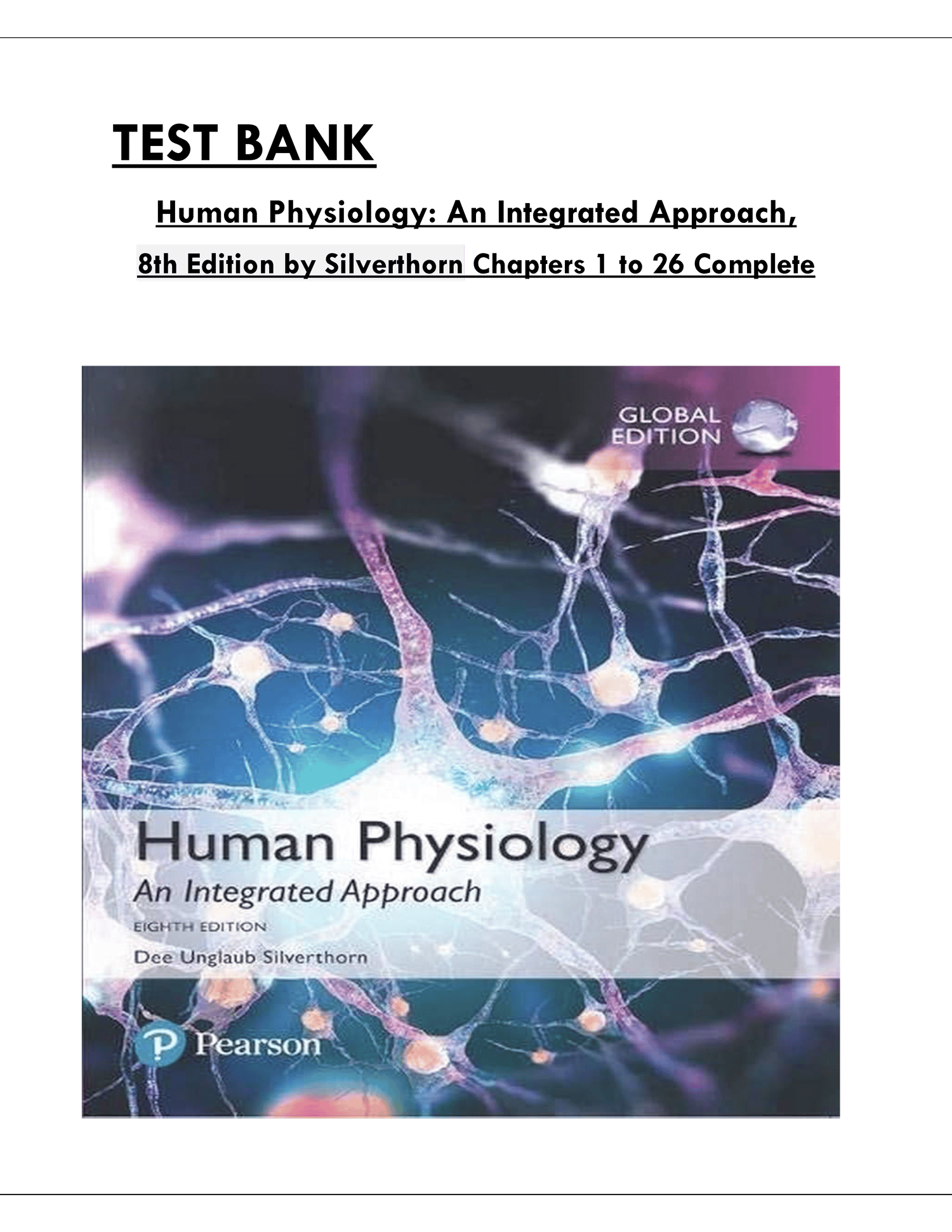 INSTANT PDF DOWNLOAD – Test Bank for Human Physiology: An Integrated Approach, 8th Edition by Dee Unglaub Silverthorn (Complete, All Chapters)