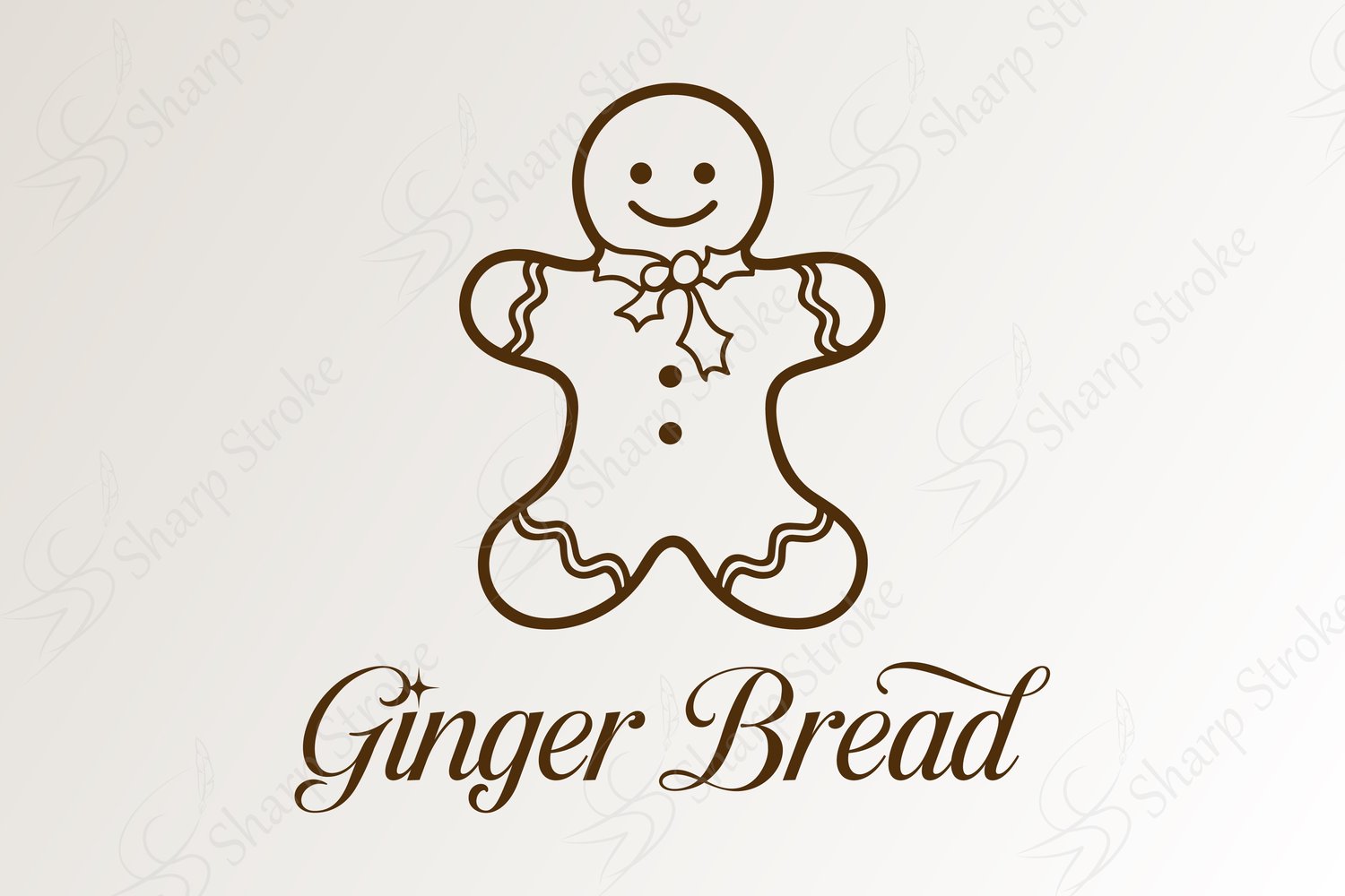 This design features a happy, smiling gingerbread cookie with a clean brown outline on a bright white background, paired with an elegant font — adding a charming, classic touch to any Winter project.