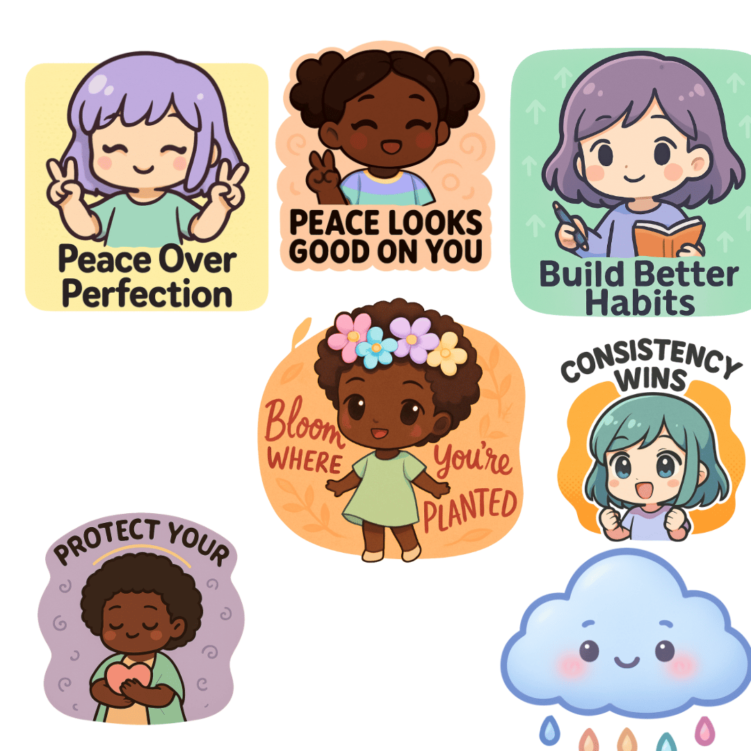 This curated sticker pack brings a burst of soft motivation to your planner, journal, content, or digital workspace. Clean lines. High-res. Ready to uplift.