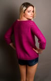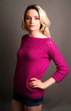 Joelle is a stunning spring, summer, and autumn top which is knitted flat but in one piece. Start at the bottom of the back and knit up, over the sleeves and neck, then back down the front. Its unusual construction means there is no seaming in the beautiful lace pattern across the top.