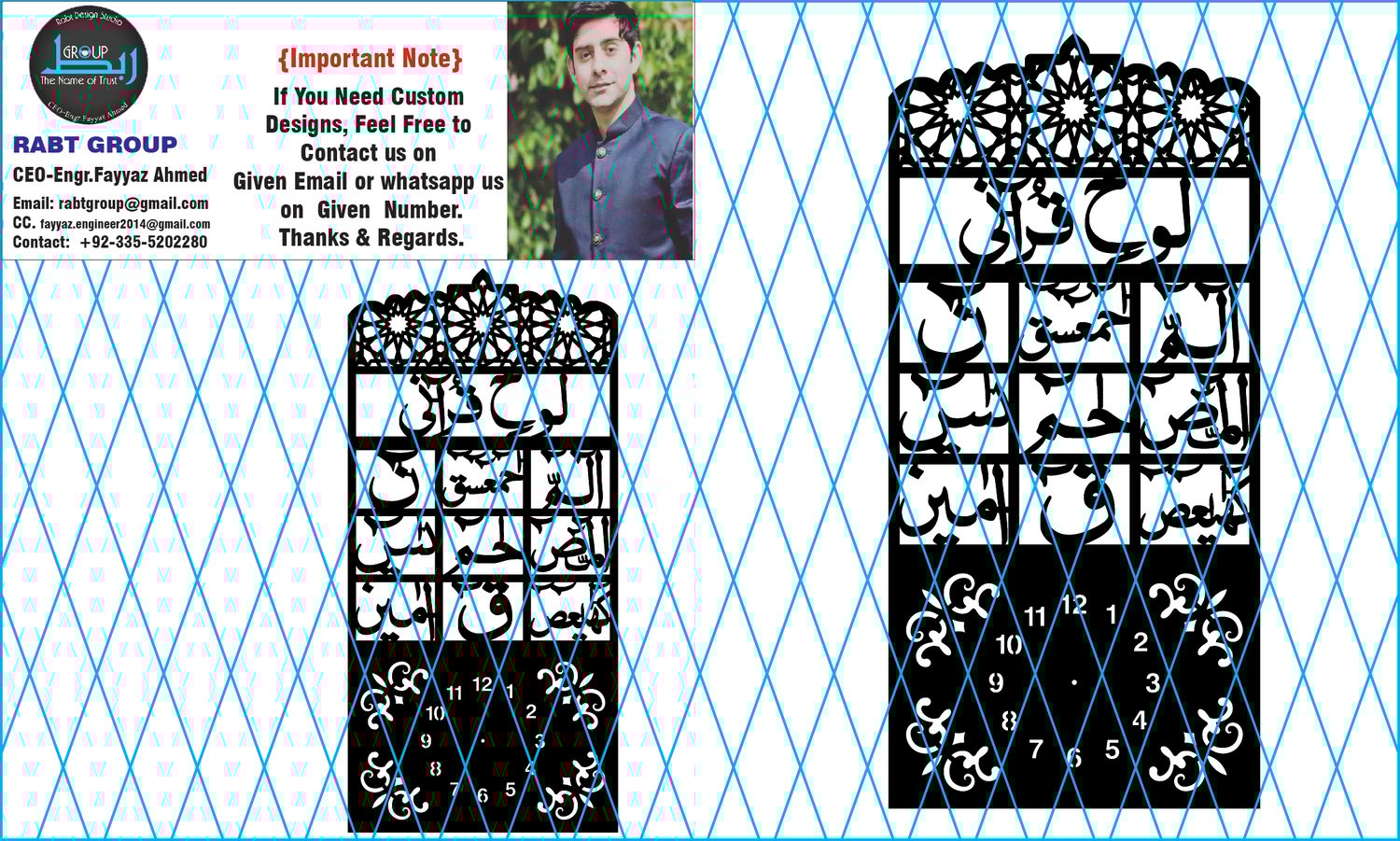 Download the Loh e Qurani Wall Clock design from Rabt Group and create a timepiece that brings harmony, faith, and style to your space. Add a touch of spiritual beauty to your home with this elegant and meaningful design.
