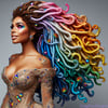 Marina Rainbows are 4 vibrant mermaids with shimmering rainbow dreadlocks and scales that reflect the ocean’s many blues. Known for their joyful spirit and creative flair. Together, they explore the sea, leaving a trail of laughter and color wherever they swim.
