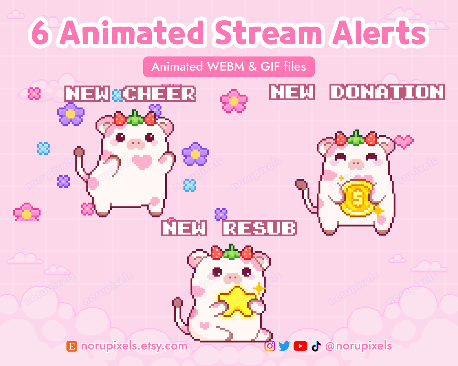 6 Animated Strawberry Cow Stream Alerts Pack