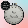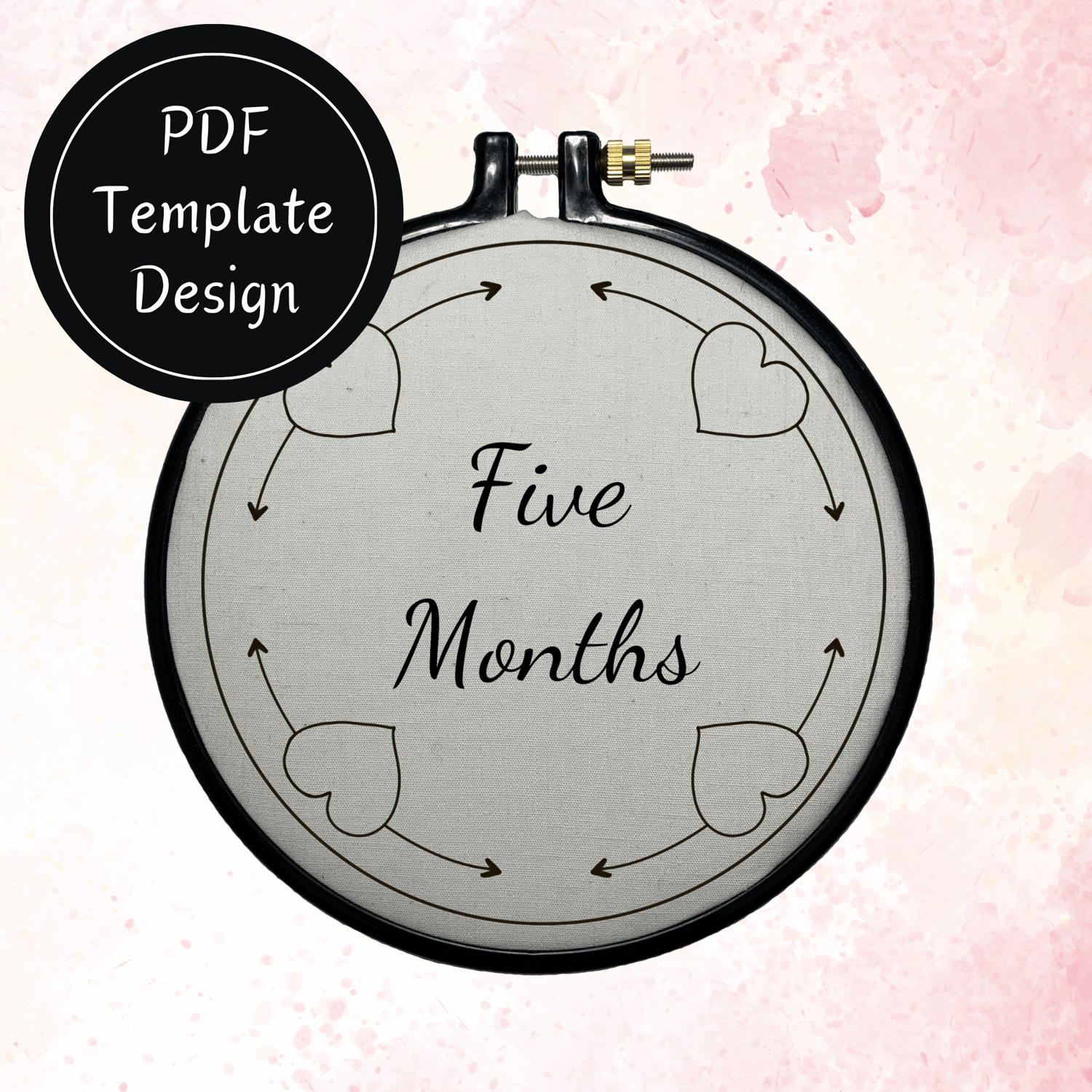 • 18 pages of patterns for a 6-inch hoop size. (1 month, 2 months, 3 months, 4 months, 5 months, 6 months, 7 months, 8 months, 9 months, 10 months, 11 months, 1 year, 18 months, 2 years, first tooth, first step, loved, and the blank template to make your own)