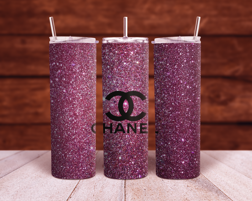 Pink Chunky Glitter Chanel Sparkles 20oz and 30oz Sublimation Tumbler Wrap PNG