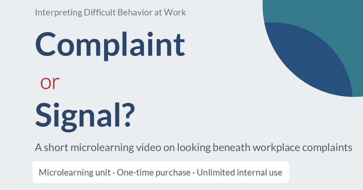 This short, self-paced microlearning helps employees and managers rethink how they respond to persistent workplace negativity. Instead of dismissing repeated complaints as unhelpful, learners explore what negative behavior may be signaling—such as frustration, fear, or loss of control—and how to stay grounded rather than reactive.