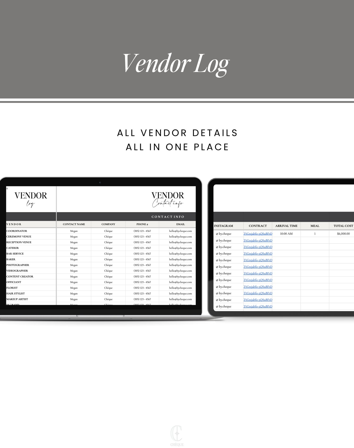 The Wedding Vendors Planner is the one and only tool you need to keep all your vendor info perfectly organized.