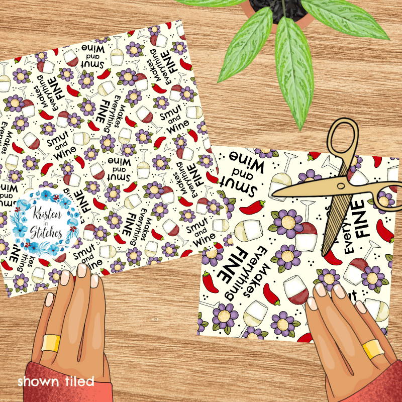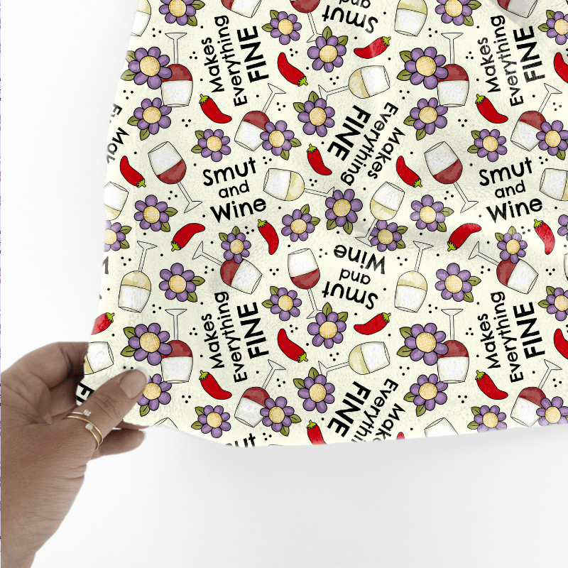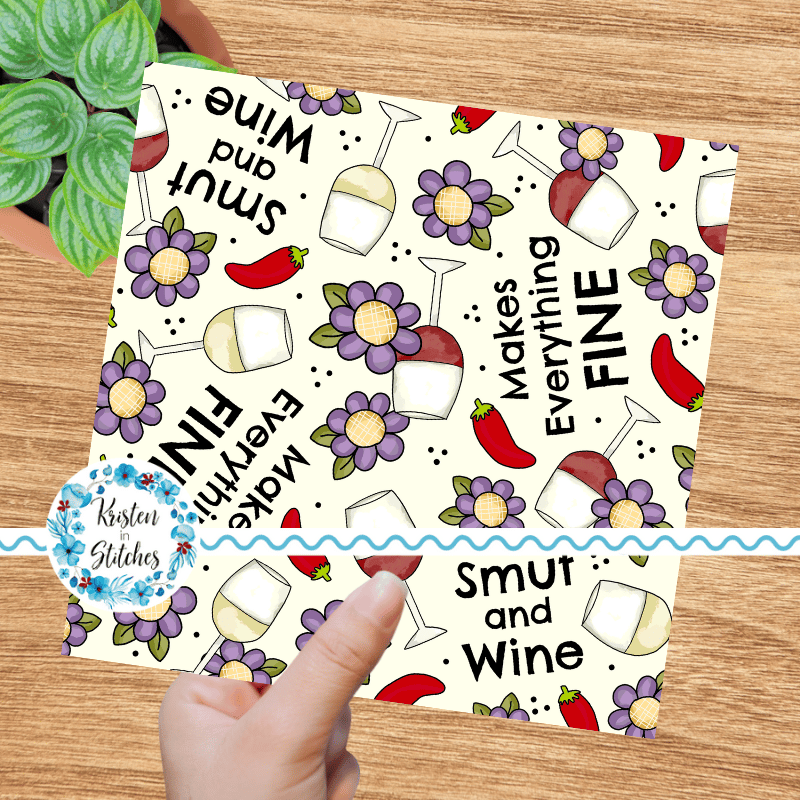 Smut and Wine Makes Everything Fine Spicy Book Lover Seamless Pattern, Ivory