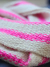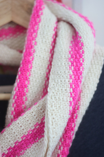 2 skeins Manos Maxima (100% Merino wool, 218 yards) in Natural (Color A), 1 skein in Shocking (Color B.)