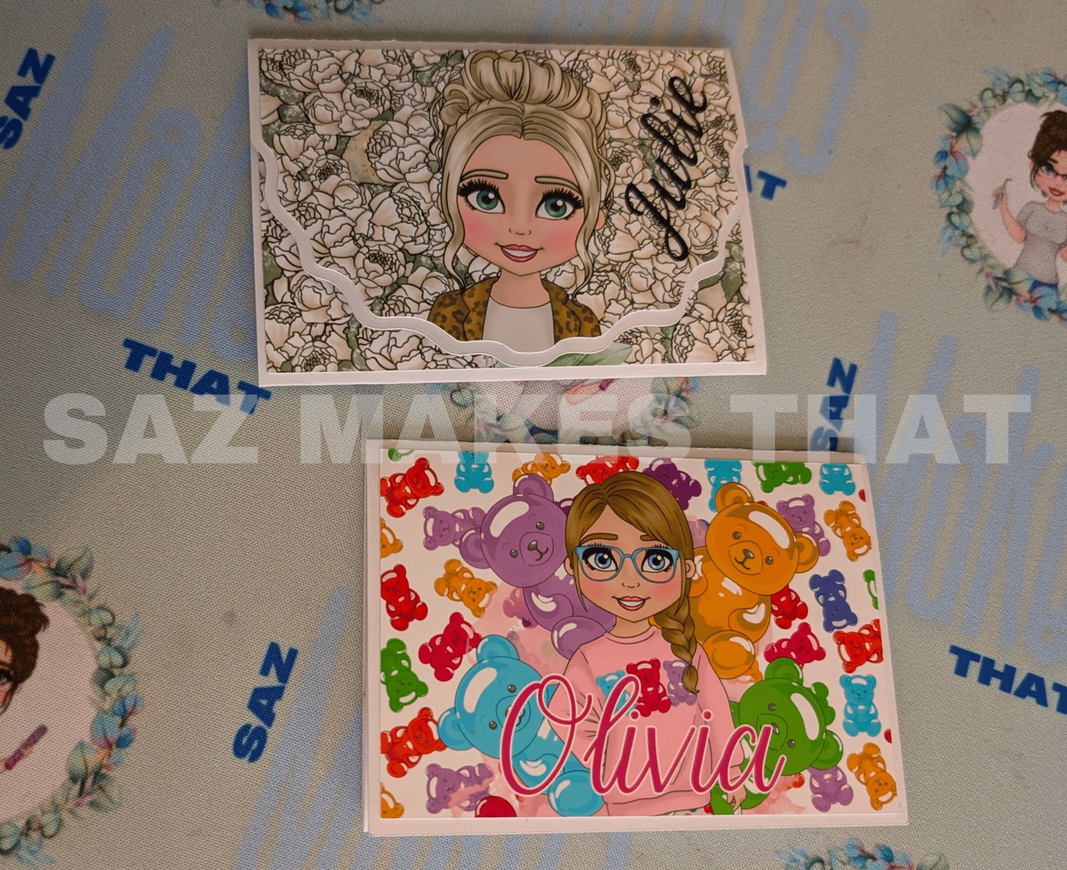 the file includes 2 different designs that you can personalise with images and text for print then cut or just cut from plain or patterned card.