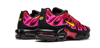 Lancée dans le cadre de la collection automne-hiver 2020 de la marque de skate new-yorkaise, la Supreme x Nike Air Max Plus 'Black' présente une empeigne en mesh recouverte de doigts TPU dégradés rouges et roses qui épellent 'Supreme' sur les panneaux latéraux. Un mini-Swoosh jaune est assorti à la marque OG Tuned Air de Nike sur le talon, tandis que le logo en forme de boîte de Supreme orne la languette. Une dynamique de couleurs similaire est utilisée sur la semelle intermédiaire en mousse noire, rehaussée par des unités Max Air visibles et une tige TPU dans une teinte cramoisie foncée.
