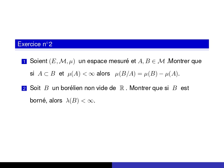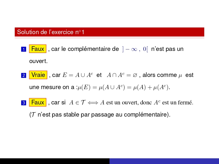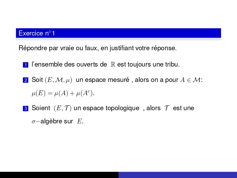 Grâce à cette micro-interrogation, chaque étudiant peut identifier ses points forts et ses lacunes dans la compréhension de la mesure et de l’intégration, deux notions centrales en analyse moderne. Elle constitue donc un excellent outil d’autoévaluation et de préparation approfondie pour la suite du module.