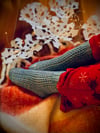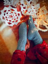 The Paper Snowflake Socks are inspired by the paper snowflakes I used to make as a child when winter was approaching. These socks are worked from the top down with a simple and repetitive lace motif. Worked with 2 strands of fingering weight yarn held together or worsted weight yarn, these socks are warm and cozy for cold winter days.