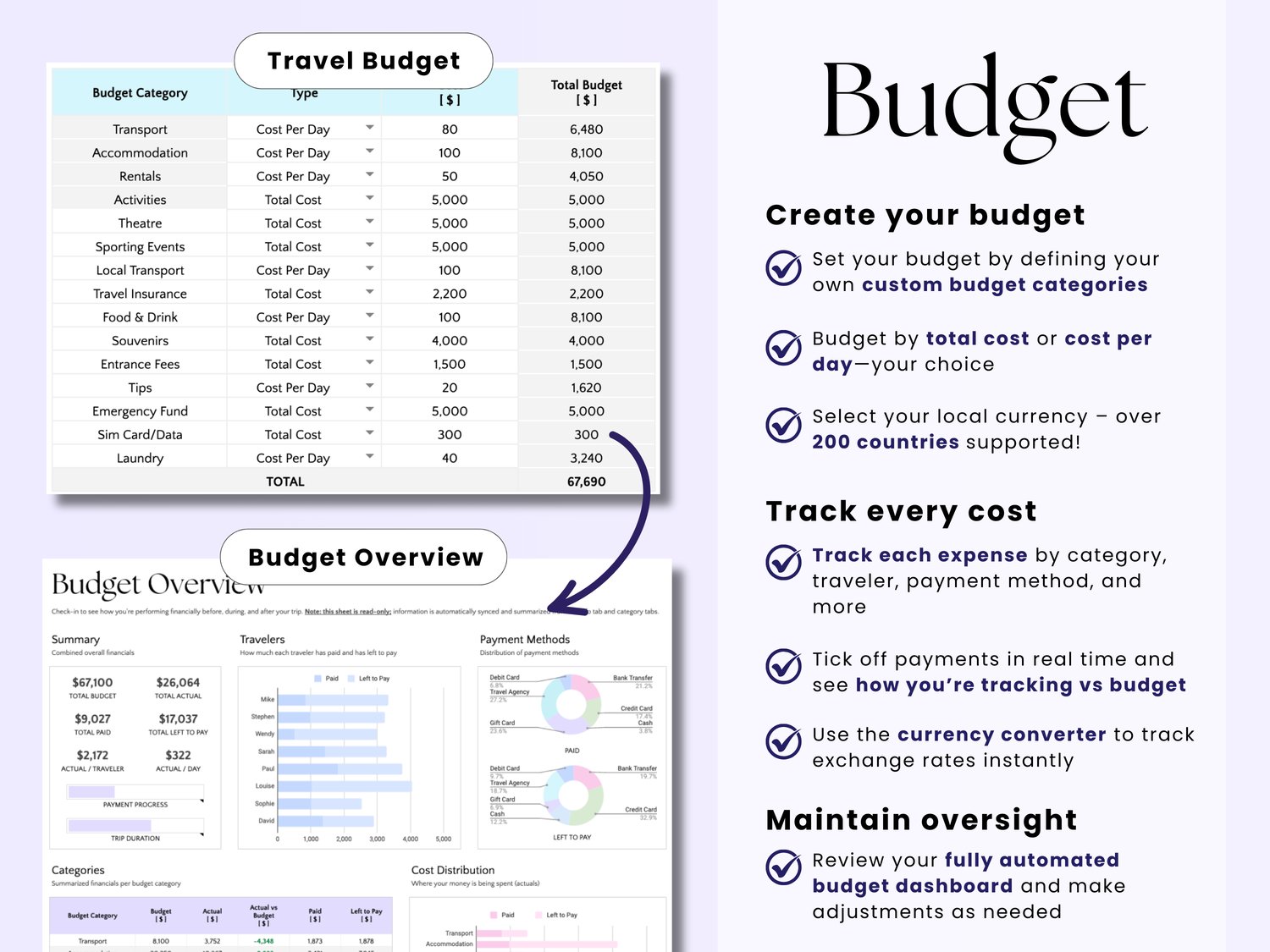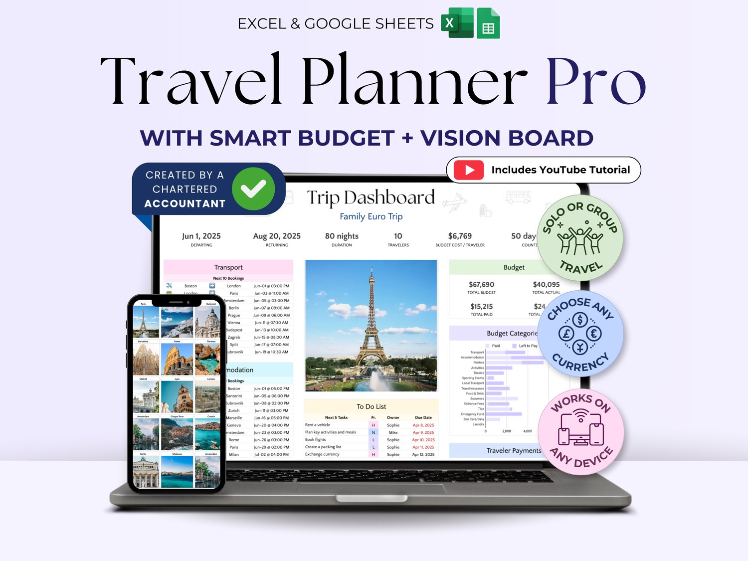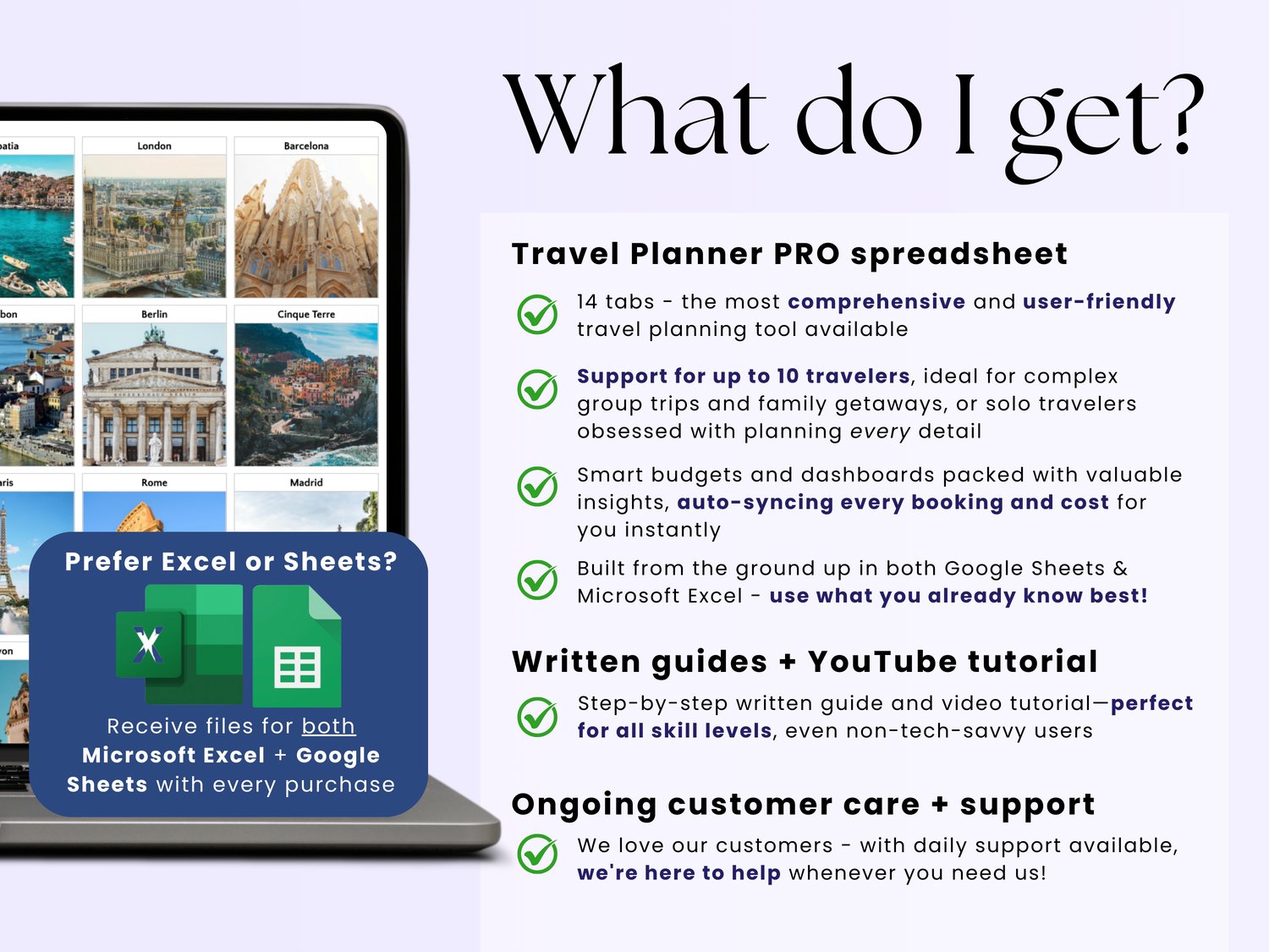 This is more than just a spreadsheet — it’s a full travel planning system to help you feel organized, relaxed, and ready for takeoff.