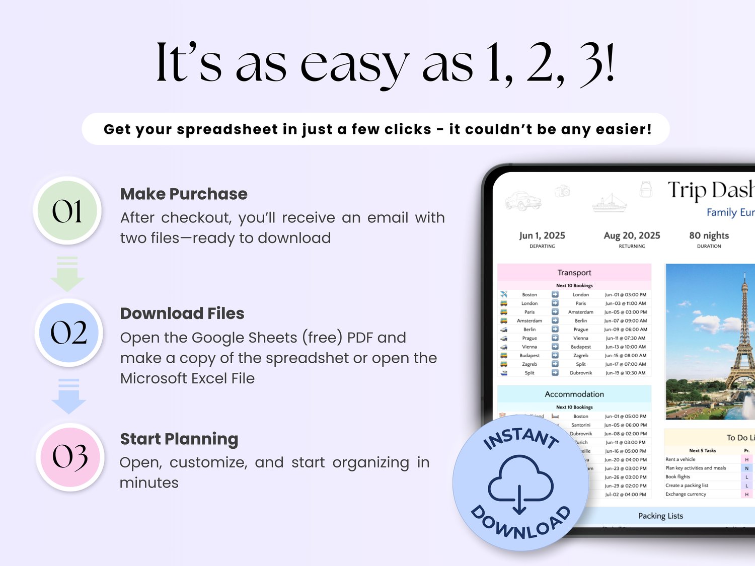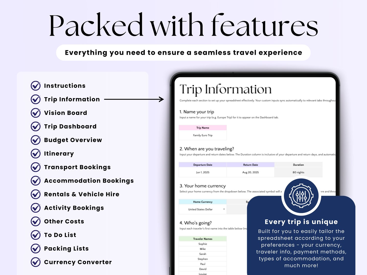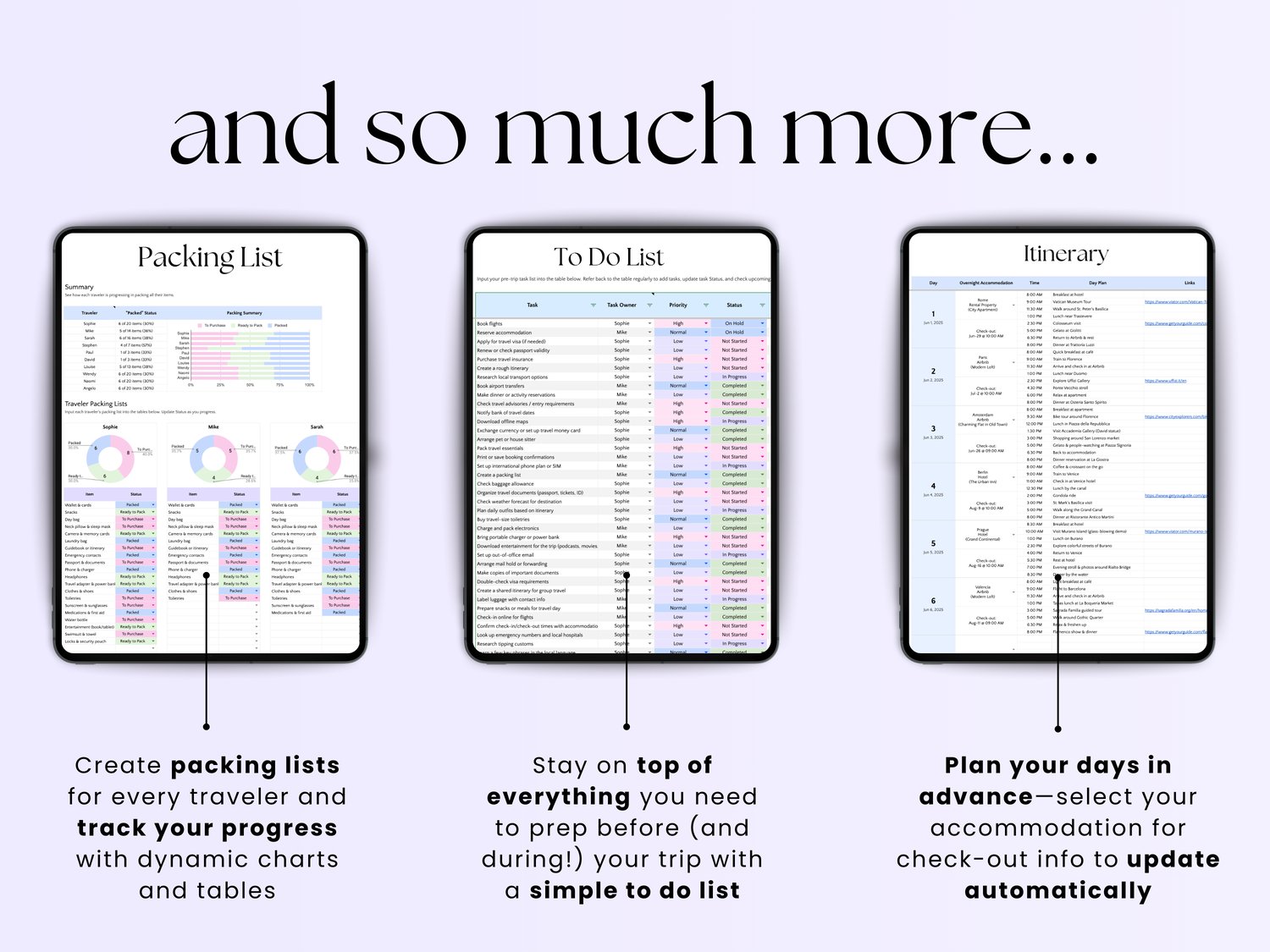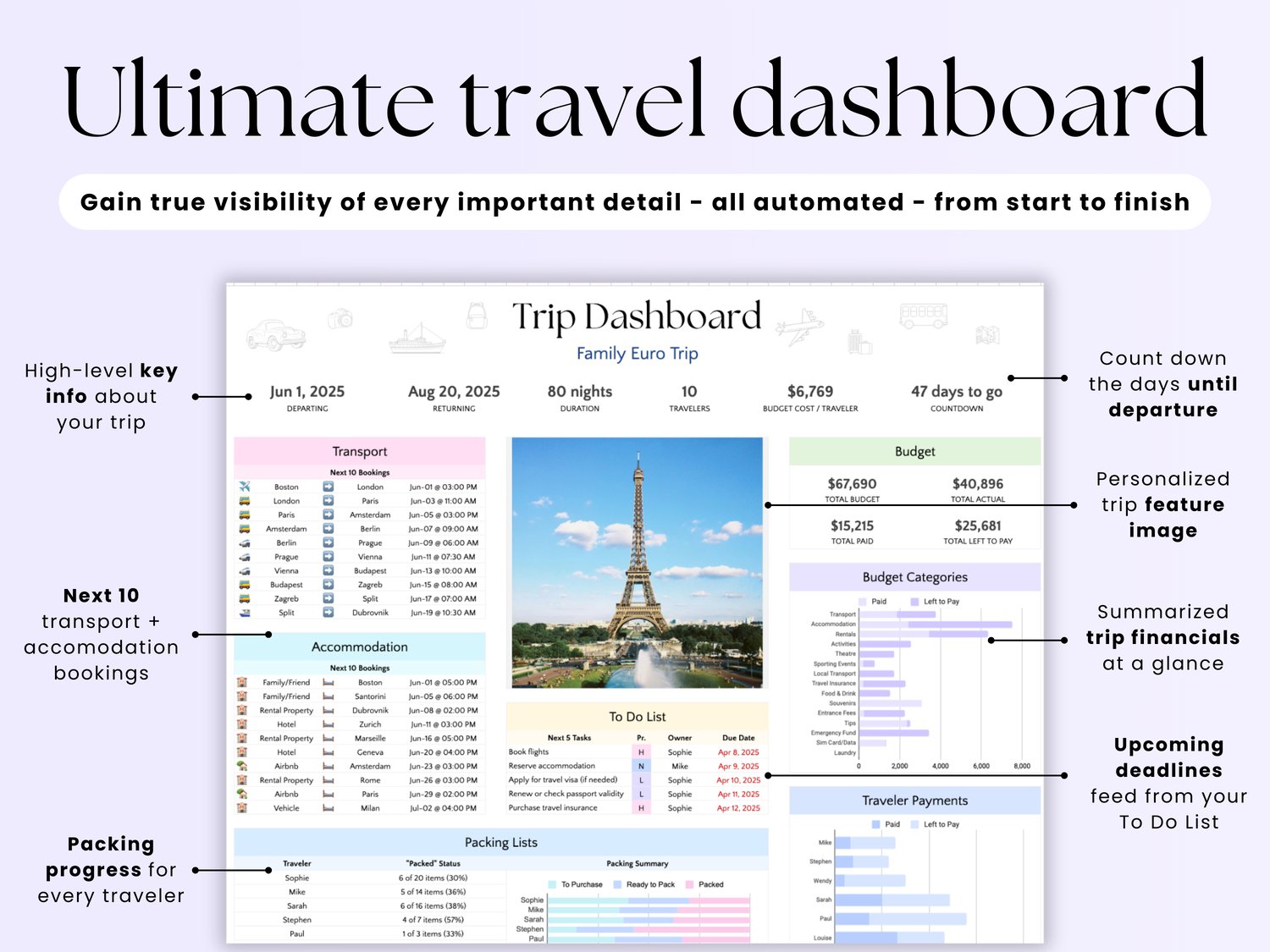 This is more than just a spreadsheet — it’s a full travel planning system to help you feel organized, relaxed, and ready for takeoff.