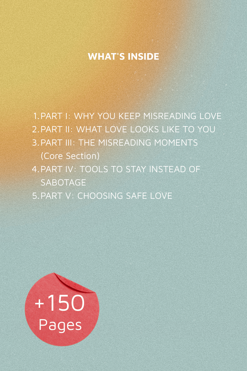 the misreading love handbook is a practical guide that teaches you exactly how to decode what's happening between you — so you stop mistaking his silence for indifference, his space for rejection, and his inconsistency for proof that he doesn't care.