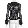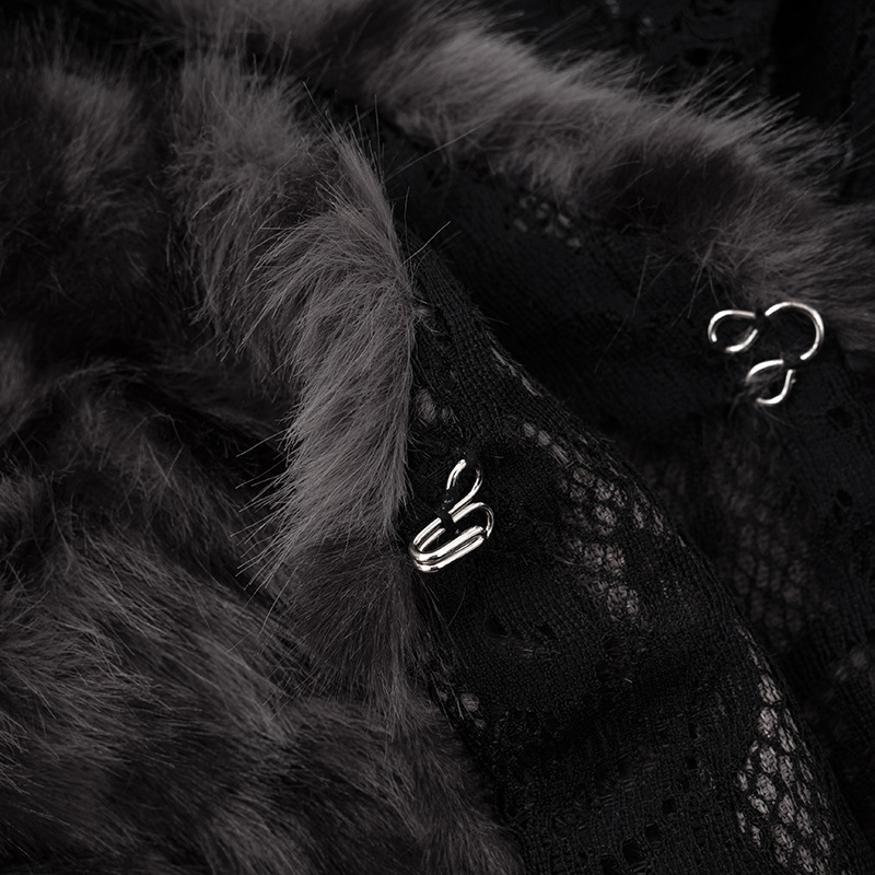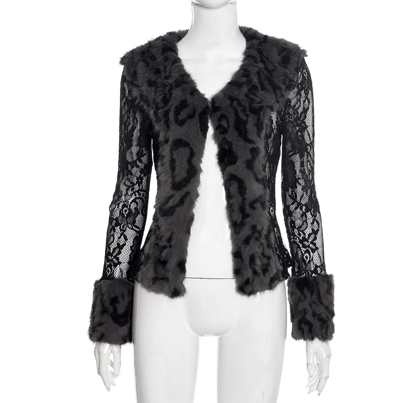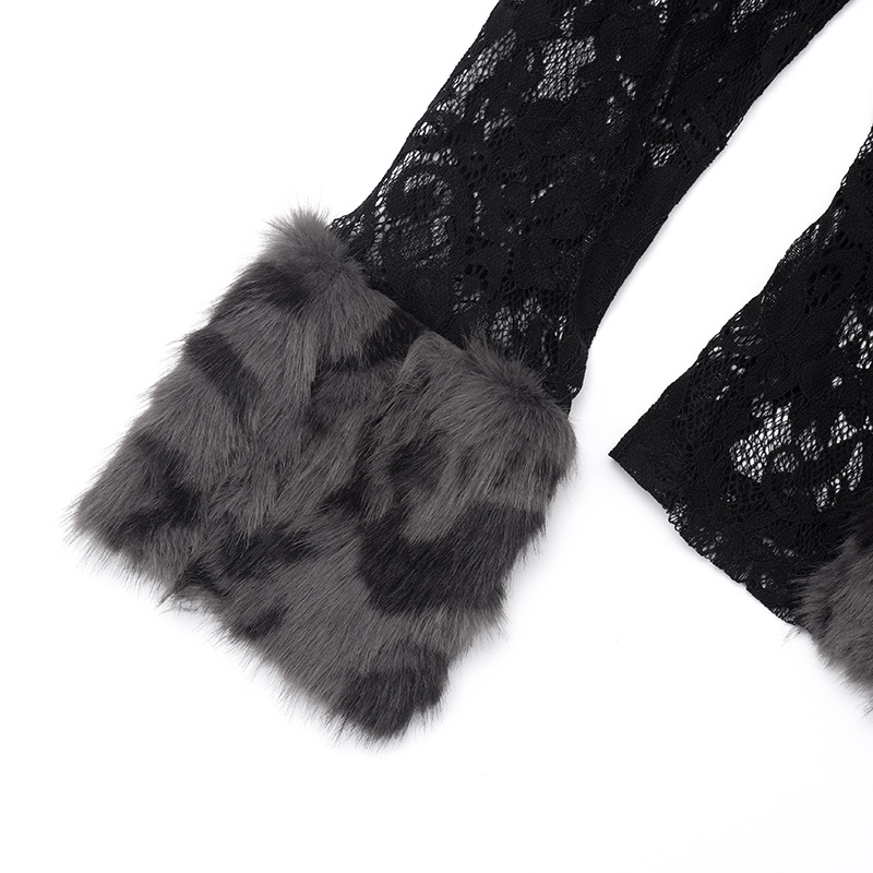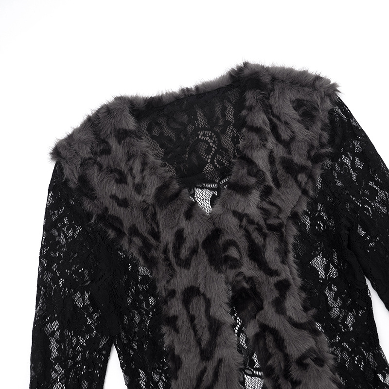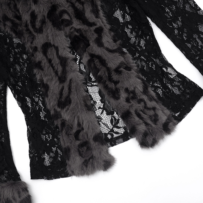Vintage black lace patchwork leopard furry longsleeve top
