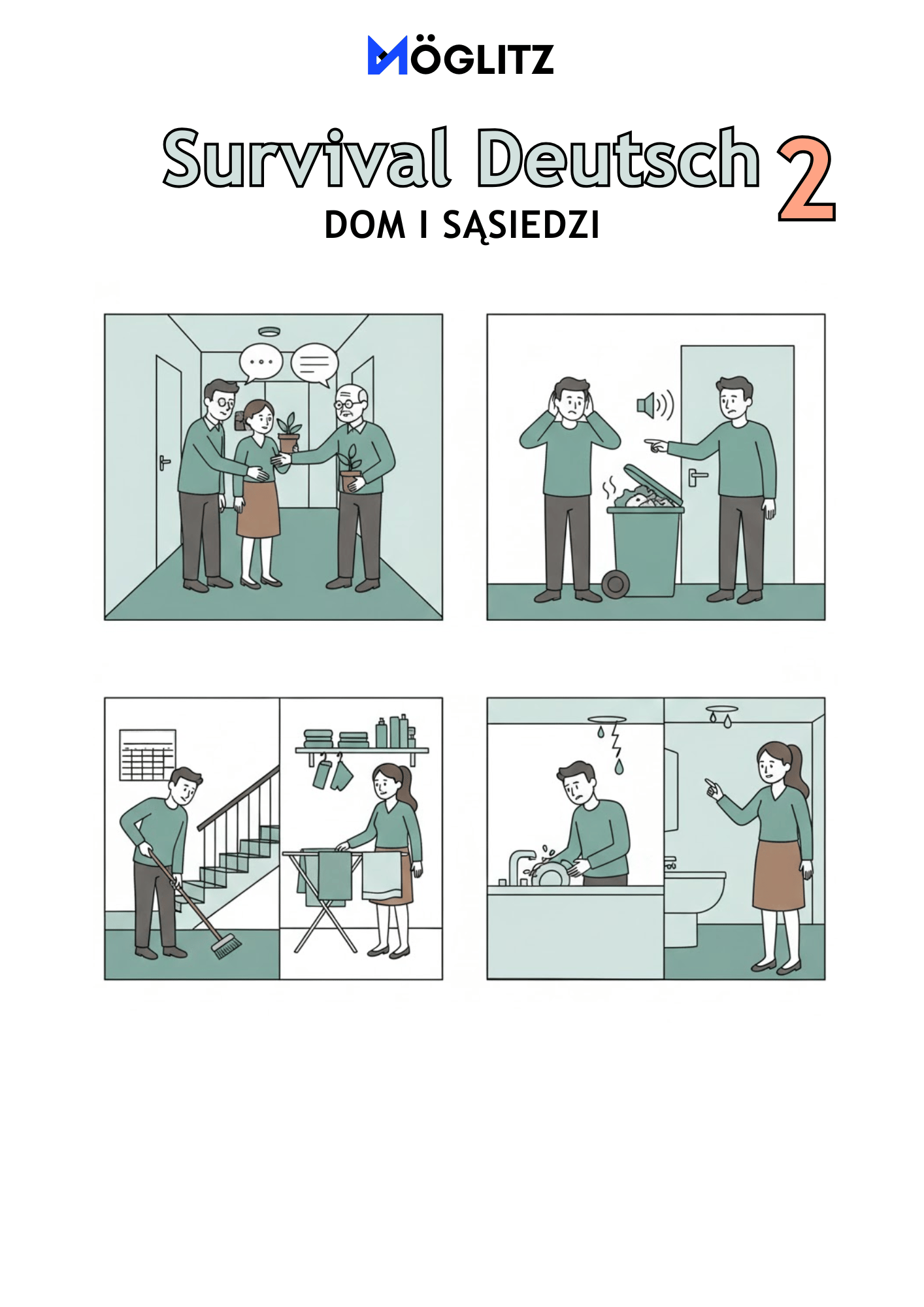 Życie w Niemczech to nie tylko praca! Codzienność w nowym kraju przynosi mnóstwo sytuacji, w których musisz się dogadać: w domu, na klatce, z sąsiadami. Jeśli chcesz czuć się swobodnie i mieć wszystko pod kontrolą, "Survival Deutsch 2: Dom i sąsiedzi" to e-book dla Ciebie!