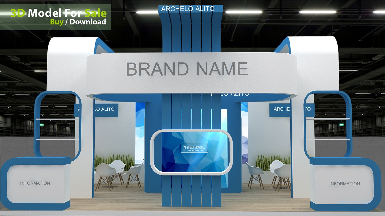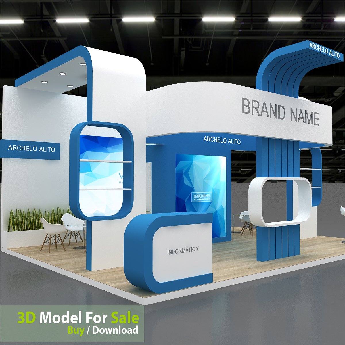 include design all necessary area in Exhibition and Booth Such as Vip and Storage and Counters and also Stand for productsFormat: 3DsMax (all version from 2016) / FBX /OBJ/