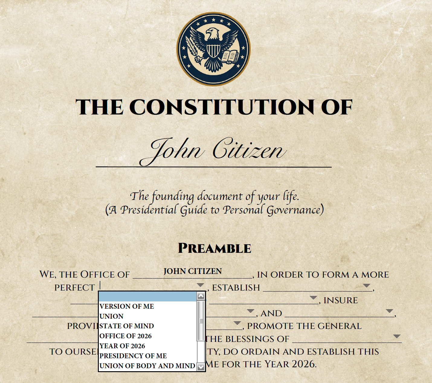 The Constitution of Me™ — 2026 Presidential Digital Planner (Fillable PDF)