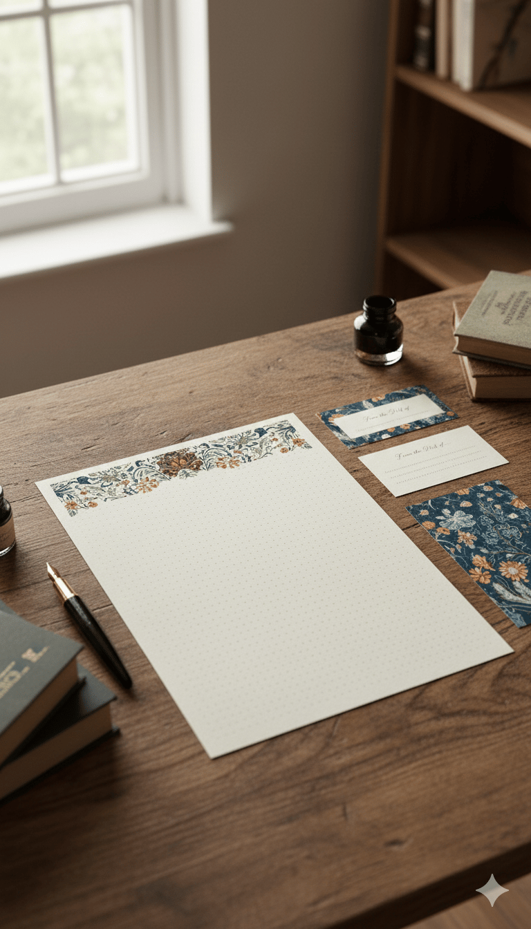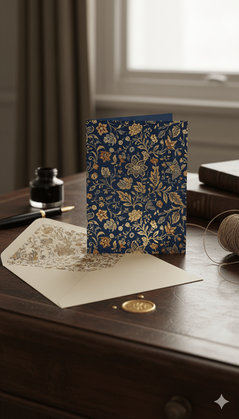 - Design: Gold Botanical/Floral Motif on Navy Blue.