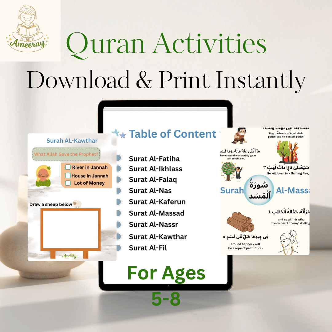 This printable activity book helps young children understand the meanings and lessons of short surahs in a gentle, age-appropriate way.