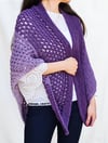 - Purple (shawl) version: width = 65" (163 cm), height = 29.5" (75 cm), approx.