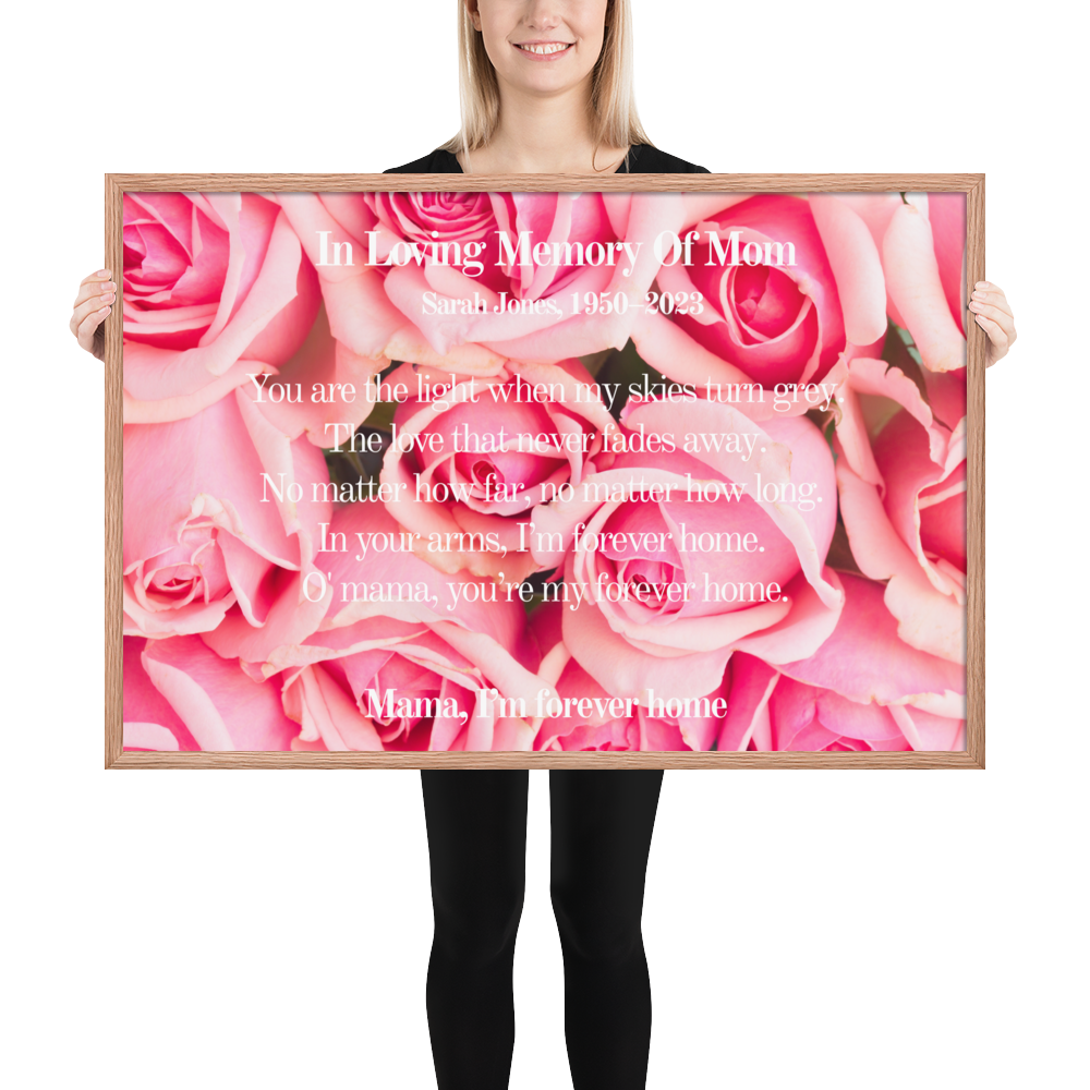 ✨ Honor your beloved mother with this beautiful personalized wall art featuring the touching lyrics from "Forever My Home."