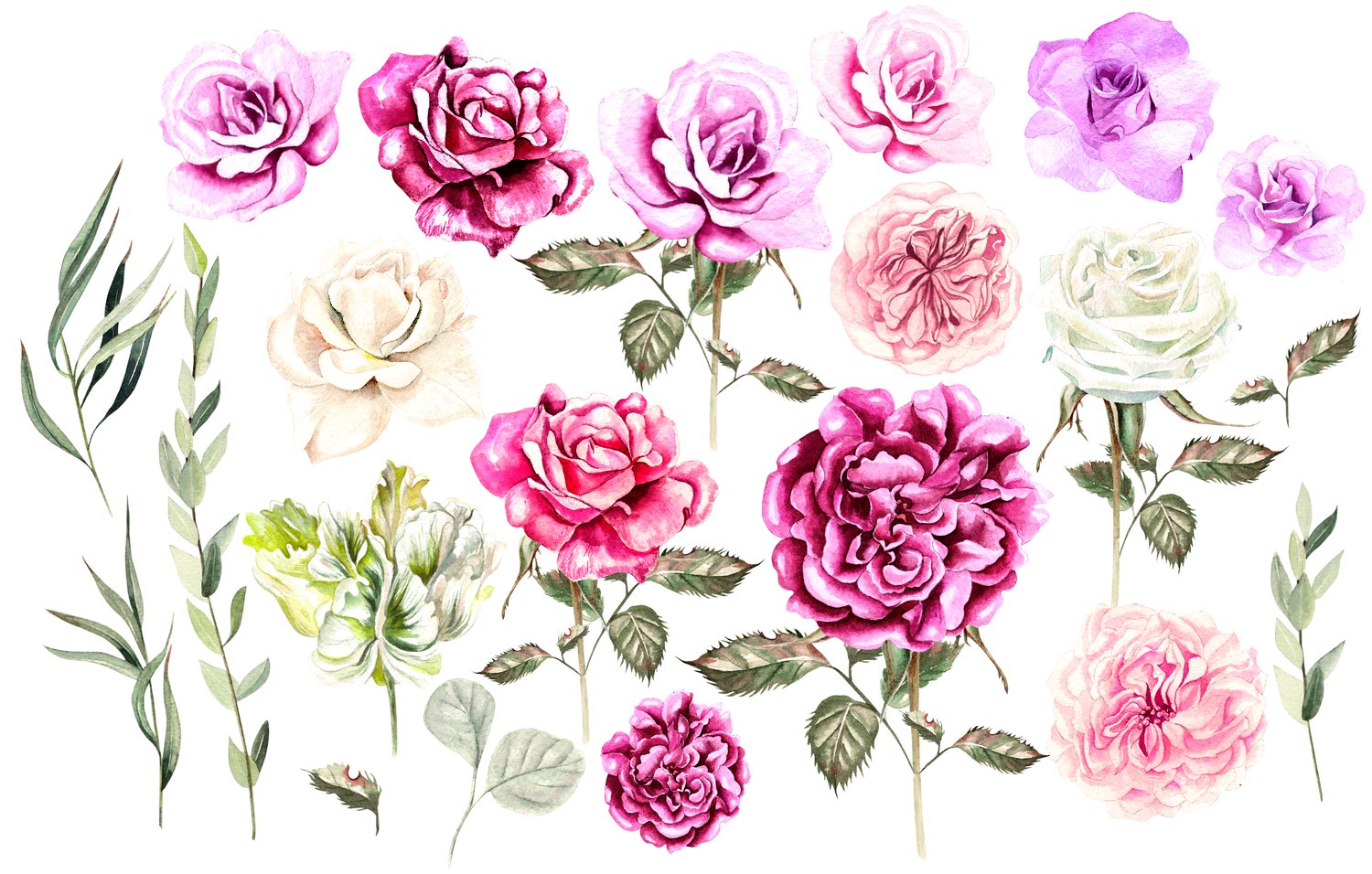 This Watercolour Bundle contains of 205 individual elements, 15 bouquets and 23 watercolor patterns. Roses, peonies, magnolia, lilac, orchid, butterflies, rabbits, succulents and cacti.
