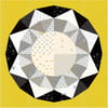 The mini quilt measures 20" square and it is a foundation pieced pattern. Tthere are no y-seams in this (or in any of my patterns. y-seams are yuck). Along with the foundation pieced templates, instructions are included on how to put the quilt top together, and there's a colouring sheet so you can plan out your quilt.