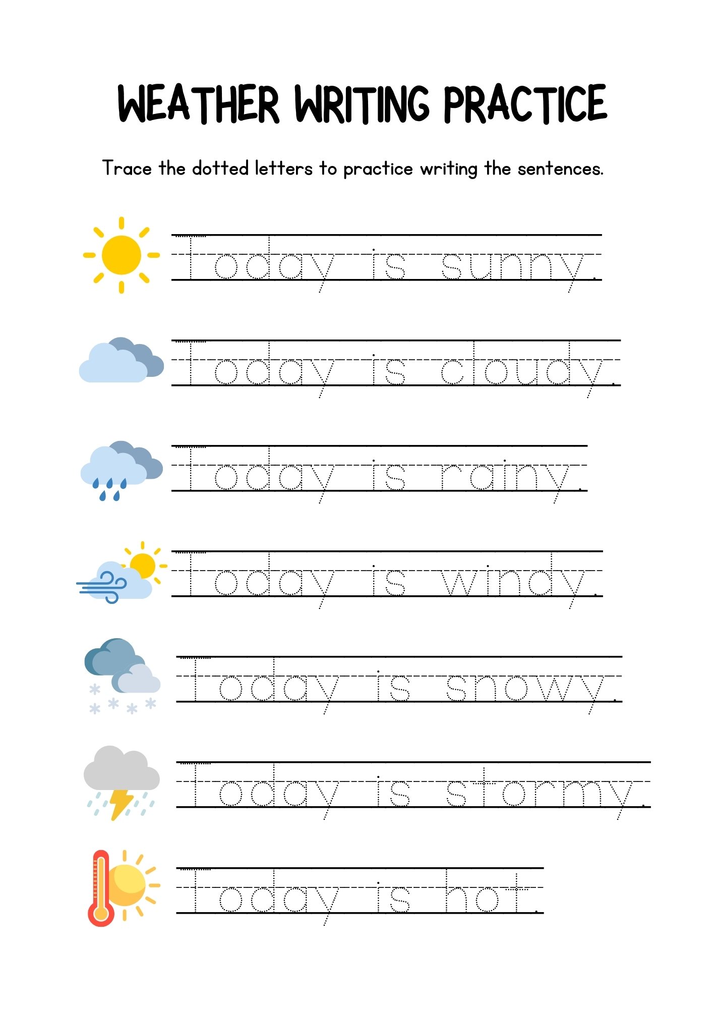 What's Inside This FREE Workbook: ✓ 56 carefully crafted tracing sentences across 8 essential topics ✓ Weather vocabulary (sunny, cloudy, rainy, windy, snowy & more) ✓ Feelings and emotions practice ✓ Colors recognition and writing ✓ Fruits and vegetables vocabulary ✓ Flavor words (salty, sweet, bitter, spicy, sour, tangy) ✓ Common vehicles identification ✓ Days of the week complete practice
