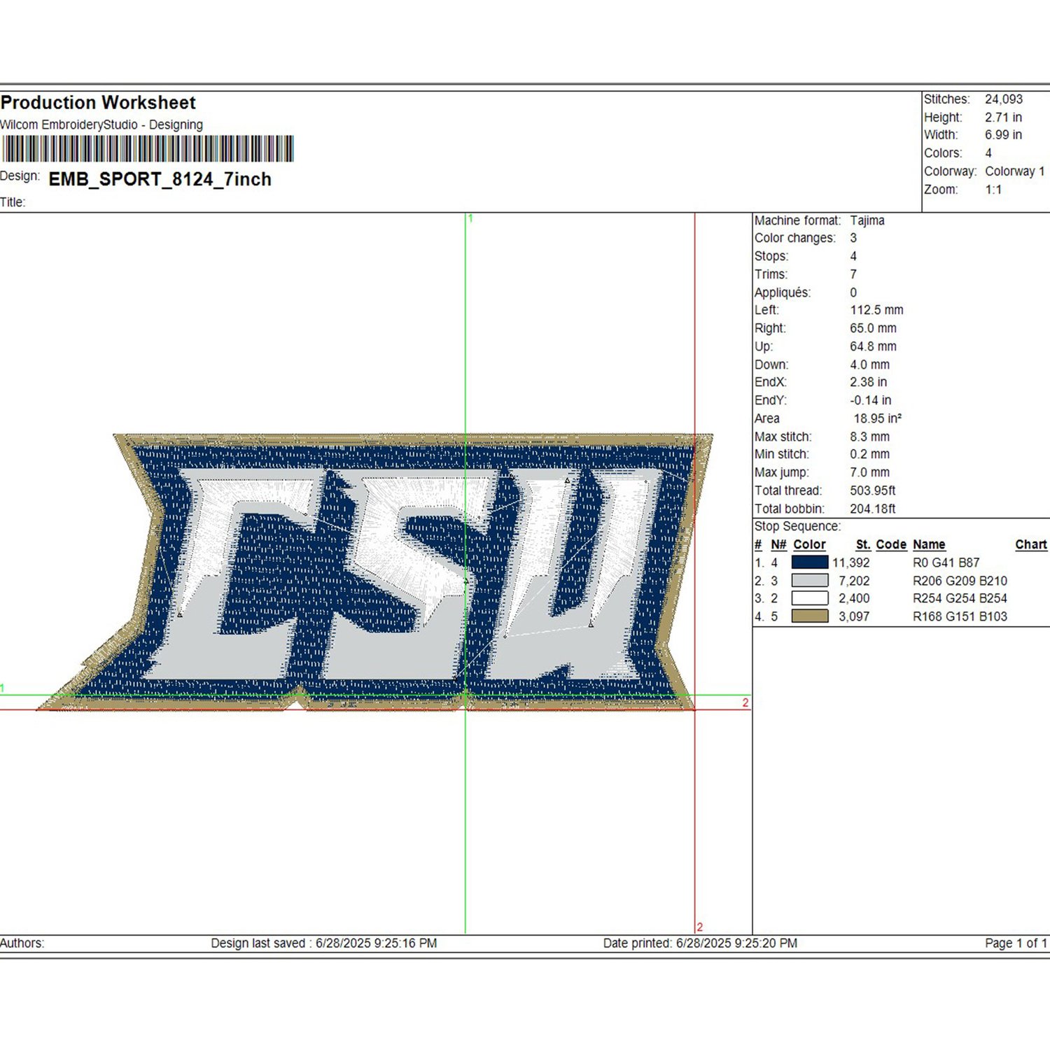 CSU Football Team Logo Embroidery Files, NCAA Charleston Southern Buccaneers Team Embroidery, NCAA College Football Teams, Charleston Southern Team Emroidery, 3 sizes, Machine embroidery designs, Digital Down