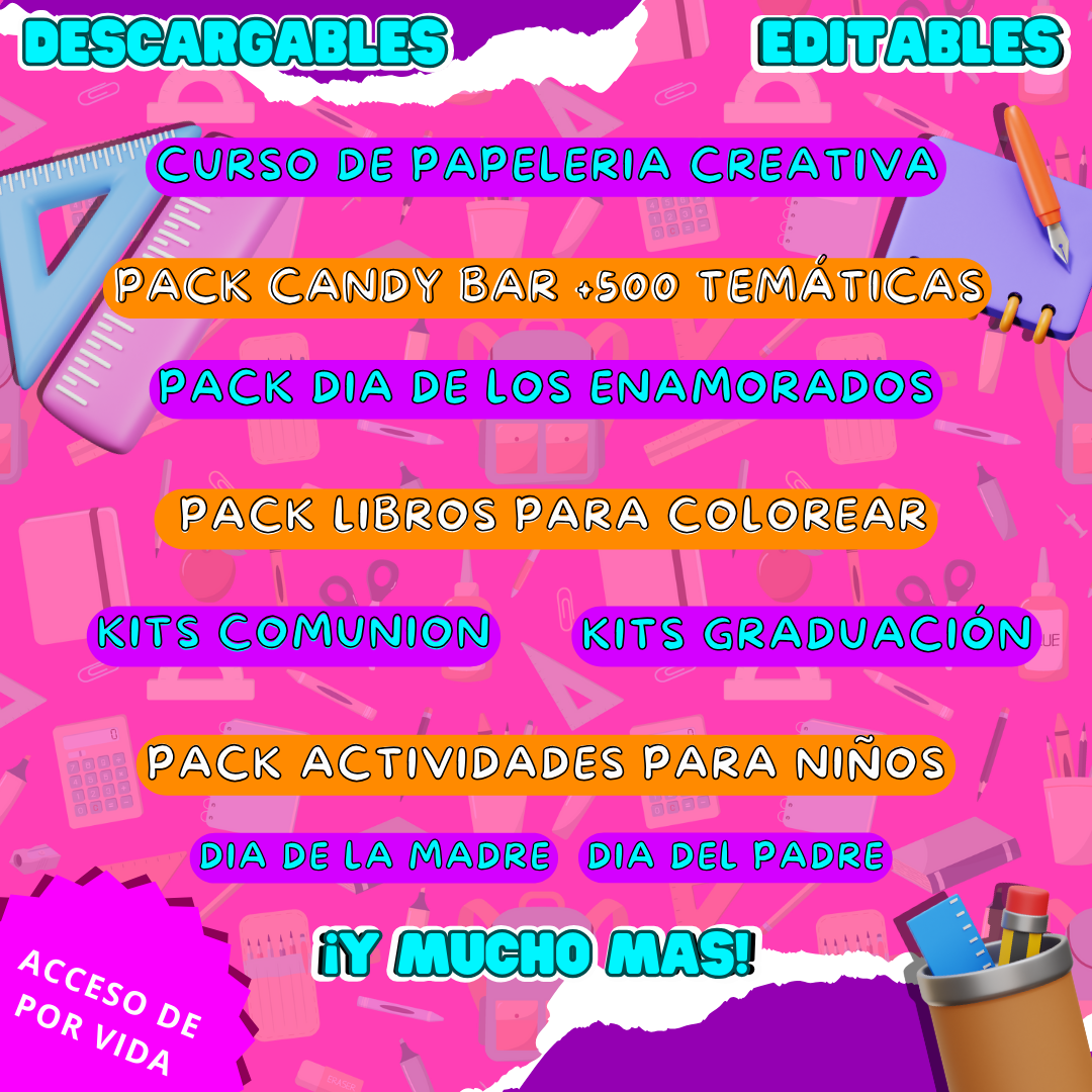 - -500 temáticas para cumpleaños de Kits de Candy Bar EDITABLES en Power Point
