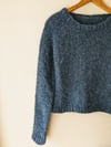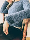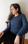 Beatrix is a classic raglan pullover made with super fluffy Upcycle Suri alpaca yarn, which gives it a funky and retro vibe.