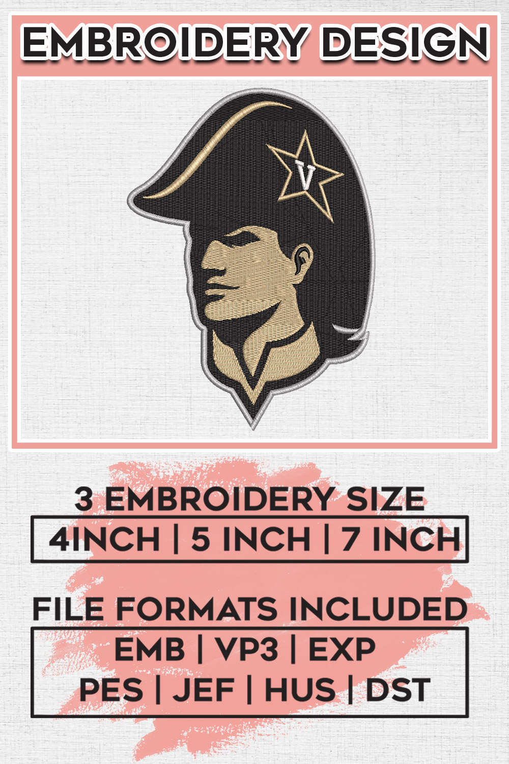 Vanderbilt Commodores NCAA College Football Team Head Mascot Logo Embroidery Designs, NCAA Vanderbilt Commodores Machine Embroidery Files, NCAA Logo embroidery designs, NCAA Vanderbilt Logo, Digital Download