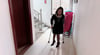 She changed into another pair of high heels and continued to practice climbing the stairs.