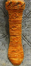 The yarn is Miss Babs Estrellita, a yarn that sparkles. Work these in the Clownfish colorway and have some bright, happy clownfish socks.