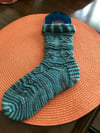 These socks are the companion piece to the Crossing the Yukon Waters Scarf and Cowl pattern. These socks have large waves, small waves, and lots of fish. The large waves are in the form of a cuff that can be beaded - or not - to give even more sparkle.