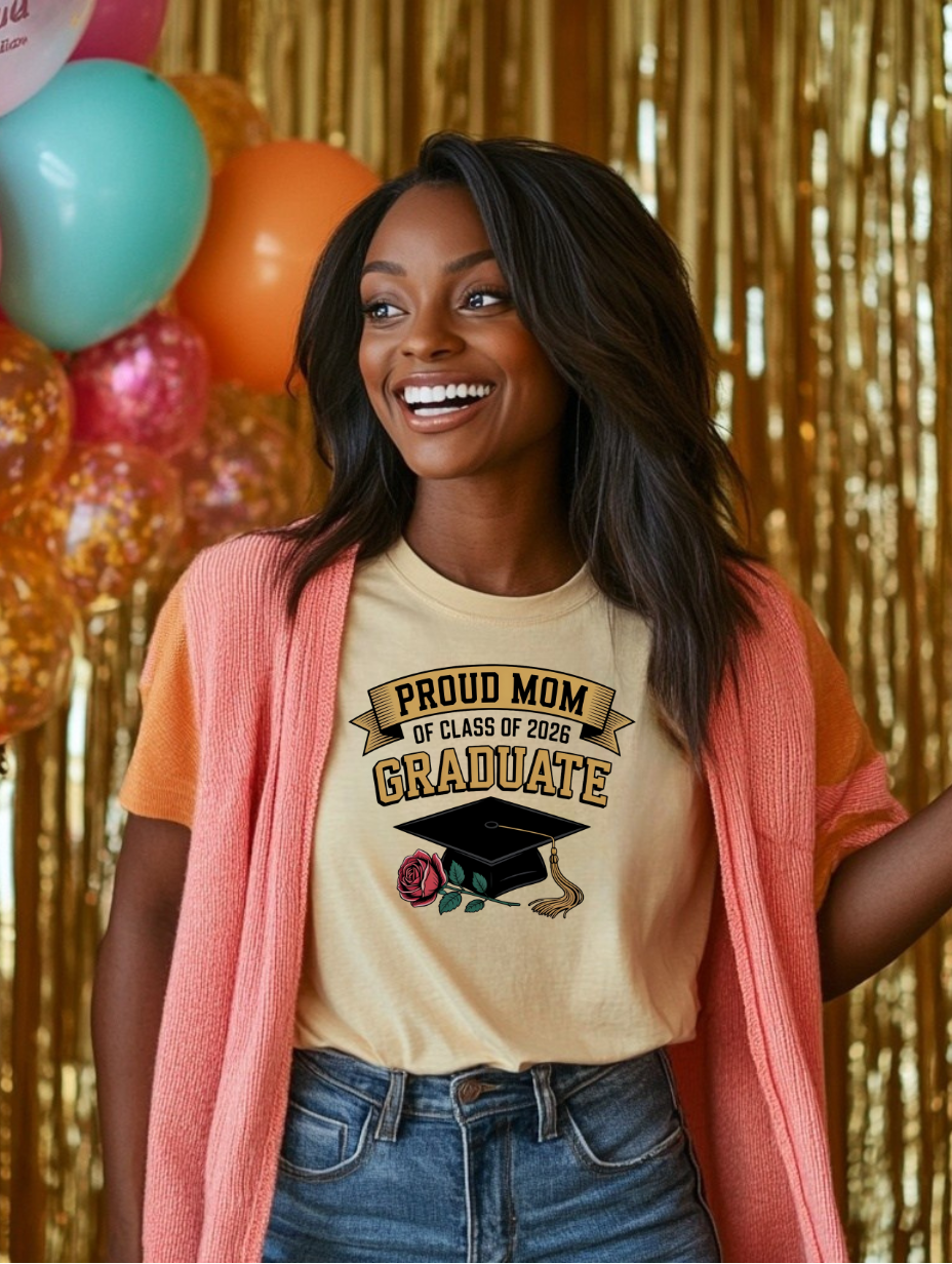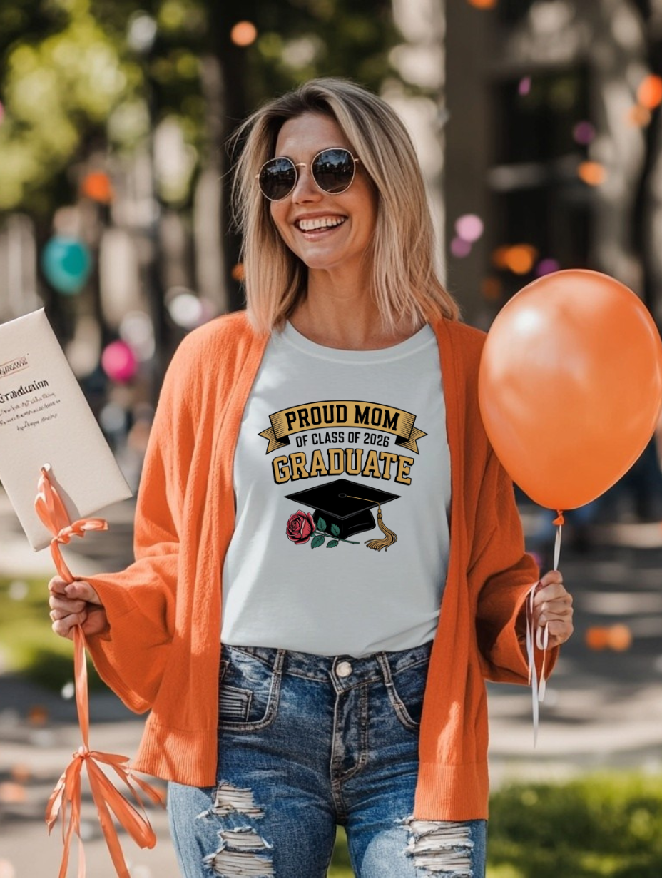 Celebrate your graduate in style with this Proud Mom of Class of 2026 Graduate design 🎓🌹 Perfect for shirts, mugs, totes, banners, and more. Show your pride while making unforgettable graduation memories!