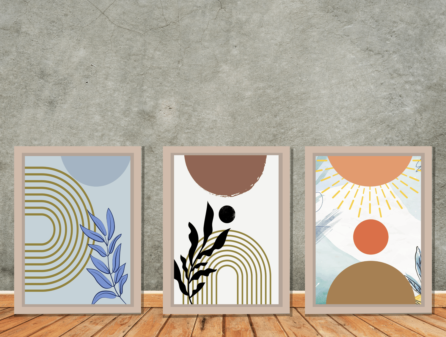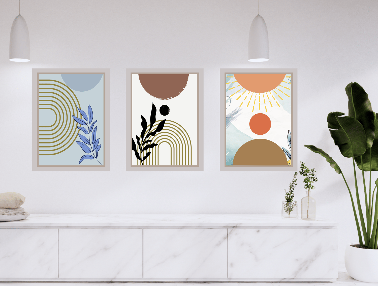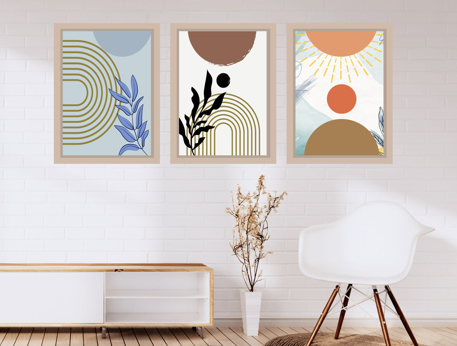 Abstract Mid Century Minimalist Boho Digital Prints Set of 3 Neutral Modern Wall Art Decor