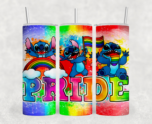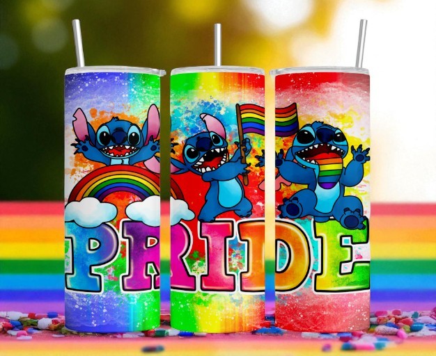 Stay fierce and hydrated with our 20oz insulated skinny tumbler—designed to keep drinks icy cold or piping hot for hours. Each tumbler features vibrant rainbow artwork and empowering messages like Peace, Love, and Equality, including adorable Stitch-inspired character, and bold multicolor PRIDE lettering Comes complete with a clear plastic lid, reusable straw, and a non-slip rubber bottom. Whether you're on the go or showing off your pride, this tumbler is your new favorite sidekick.