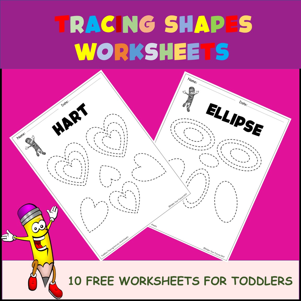 These 10 sheets (2D) to practice drawing shapes for toddlers are a great introduction to a variety of 2D shapes whilst also improving pencil control and fine motor skills. Each can be printed over and over, or laminate, and use dry-erase markers to trace the shapes.
