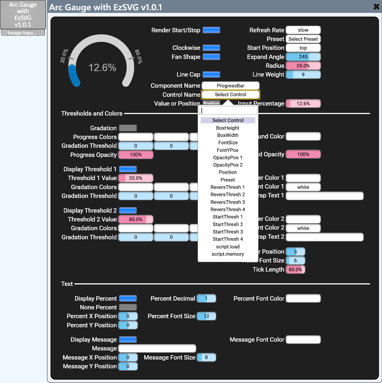・Real-time SVG Rendering – Generates animated arc gauges (full circle or fan segments) using EzSVG library