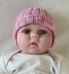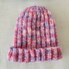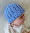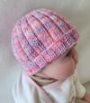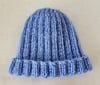 This 4ply Beanie has a 2x2 rib turn-up brim then increases out to a 2x3 rib. This design will suit either a baby girl or boy.
