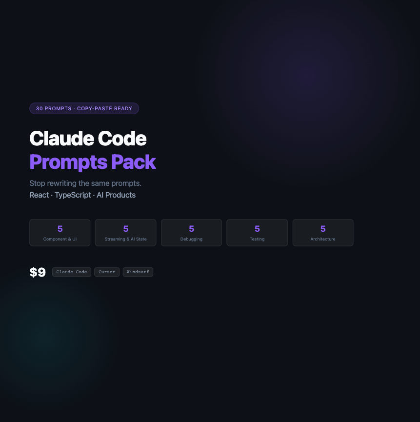 Claude Code Prompts Pack — 30 Prompts for React + TypeScript + AI Products
