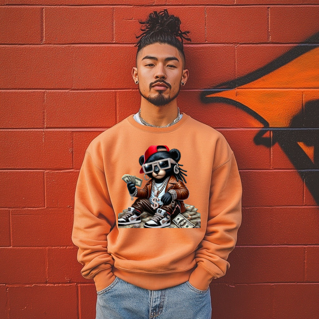 Money Stacking Bear PNG – Urban Streetwear Digital Design
