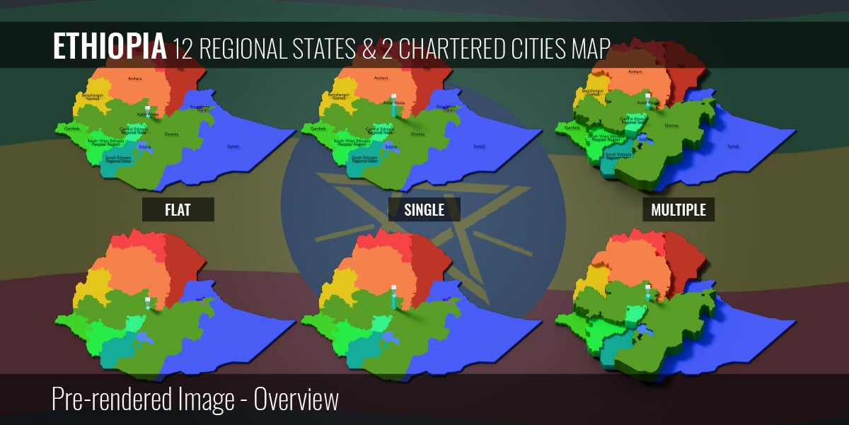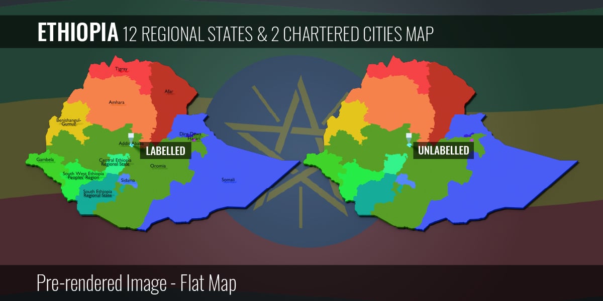 Ethiopia - 12 Regional States & 2 Chartered Cities Map (3D + Pre-rendered Images)