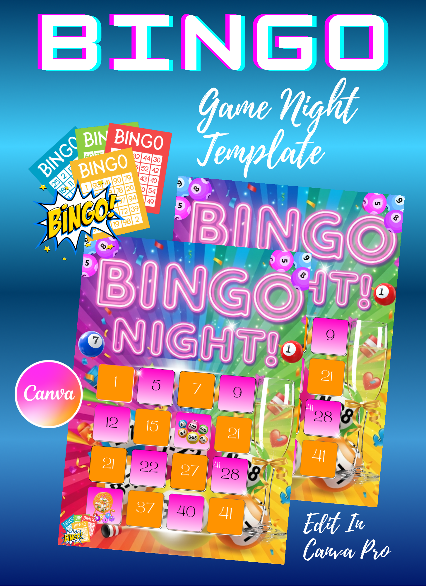 Bring the excitement to game night with this Editable Bingo Night Game Template perfect for parties, fundraisers, birthdays, girl’s night, bridal showers, and more! 🎉 Bingo Night artwork and some graphics are not editable.