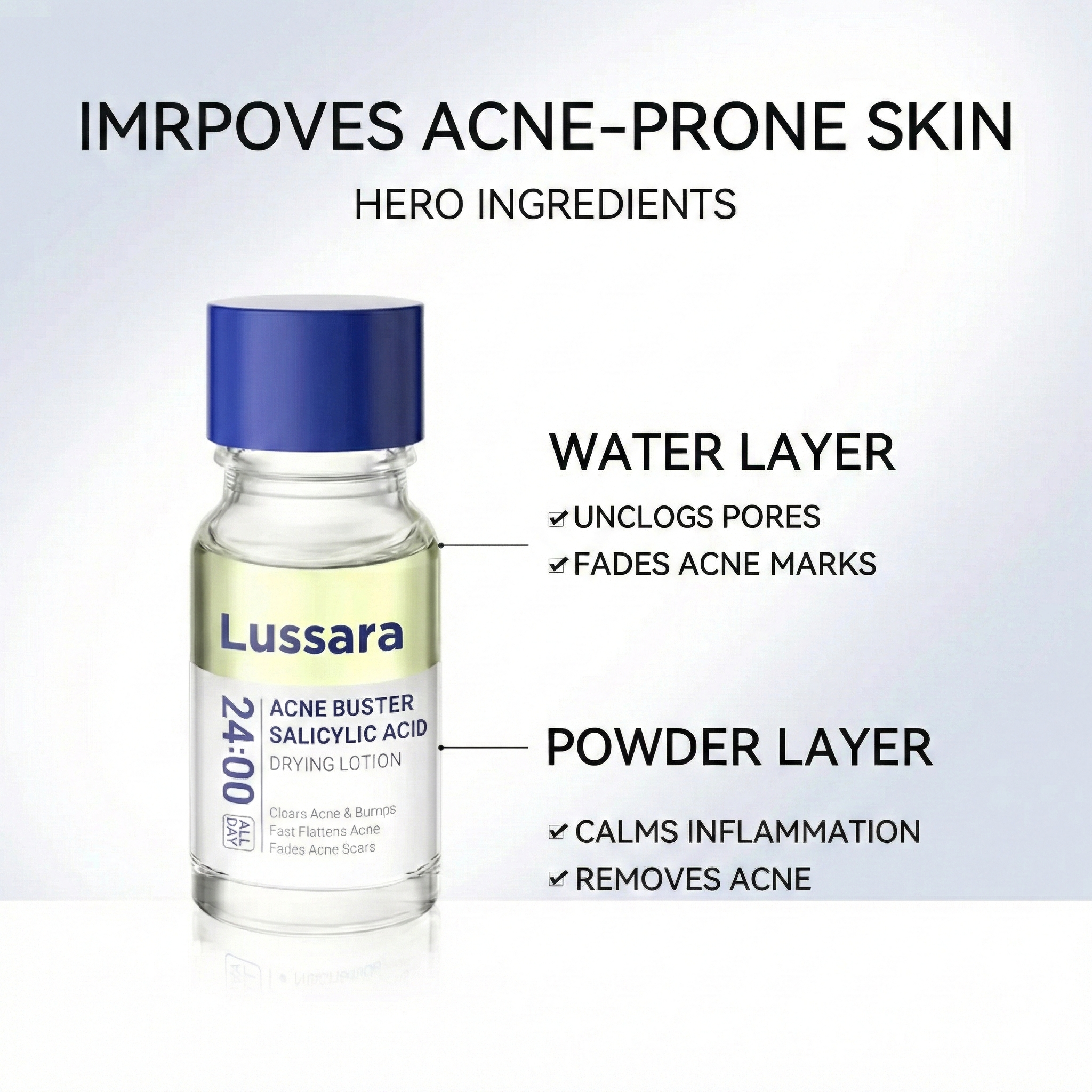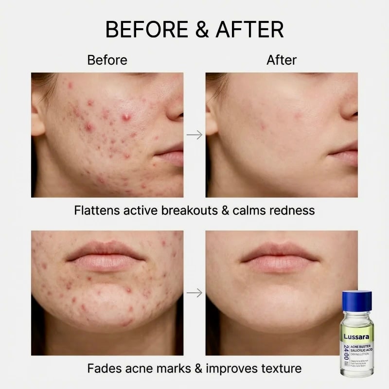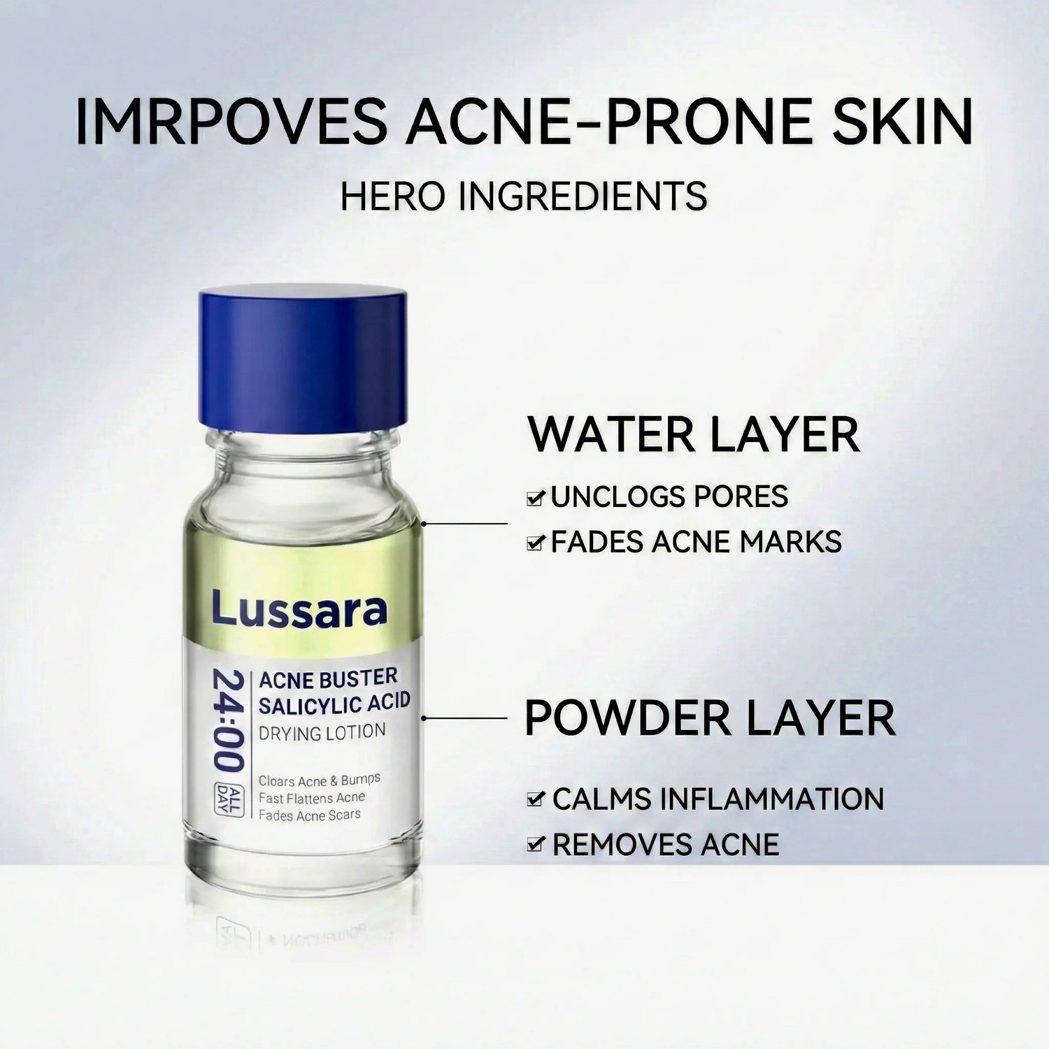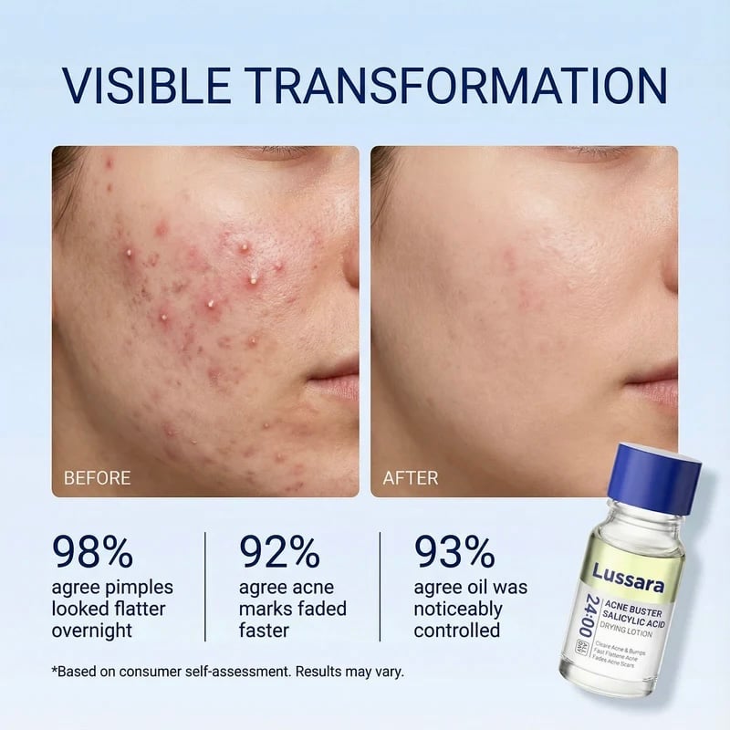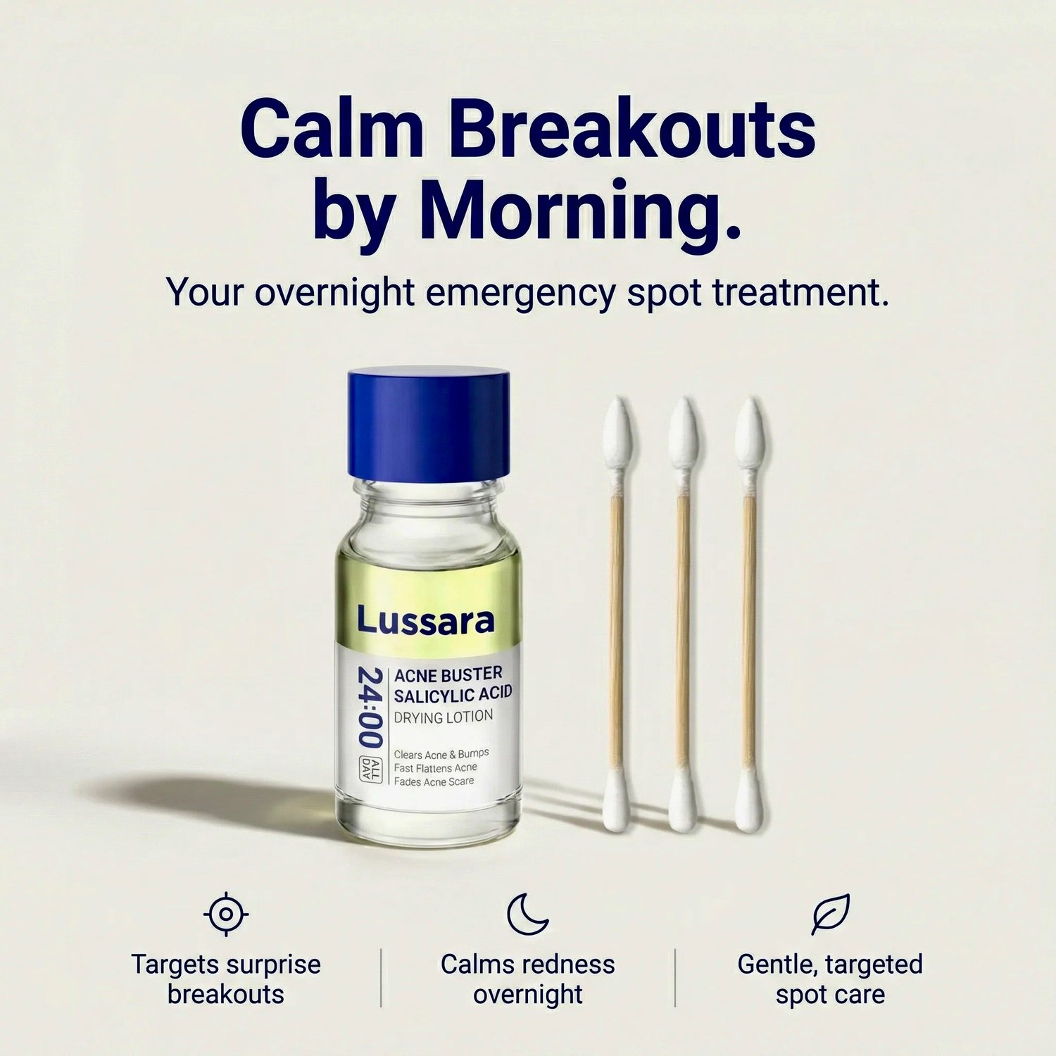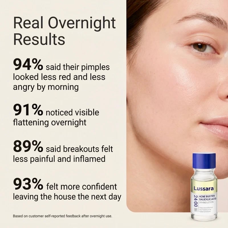 Let the Lussara Acne Buster work its magic overnight. Don't rub it in. Wake up to visibly flattened 'mountains' and reduced redness. No more dreading the mirror. Just the clear, calm skin you deserve. Reclaim your confidence by morning.