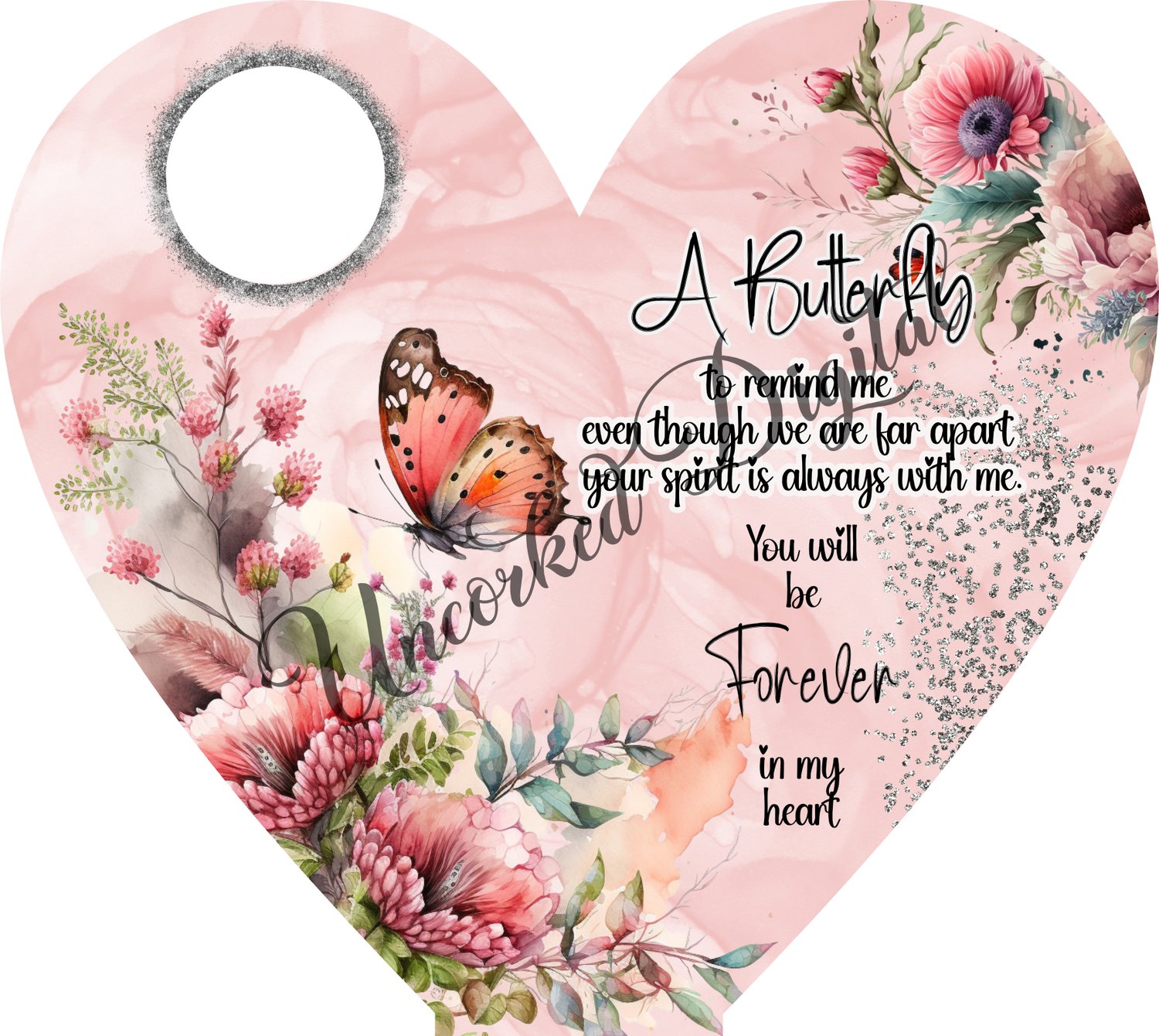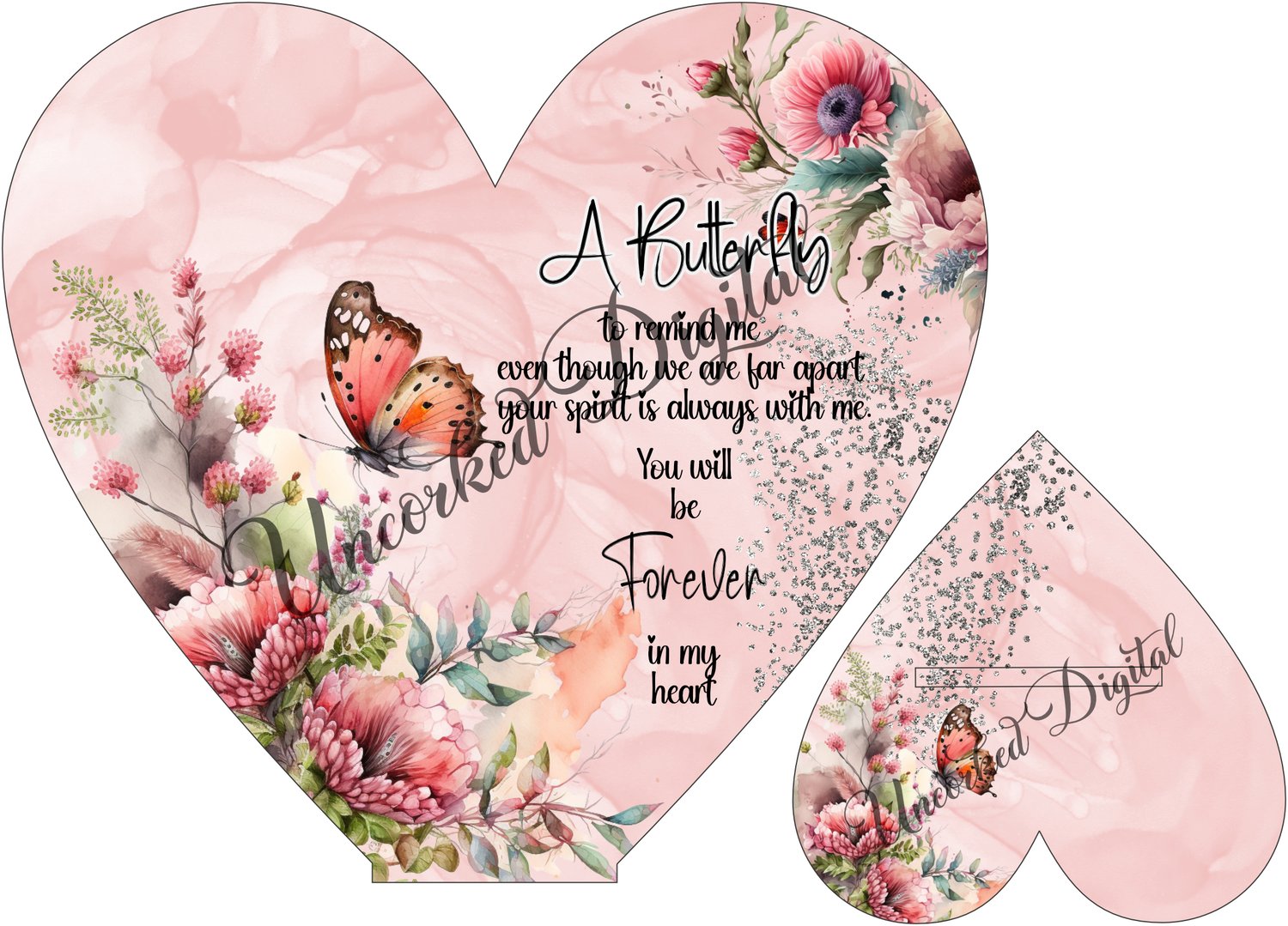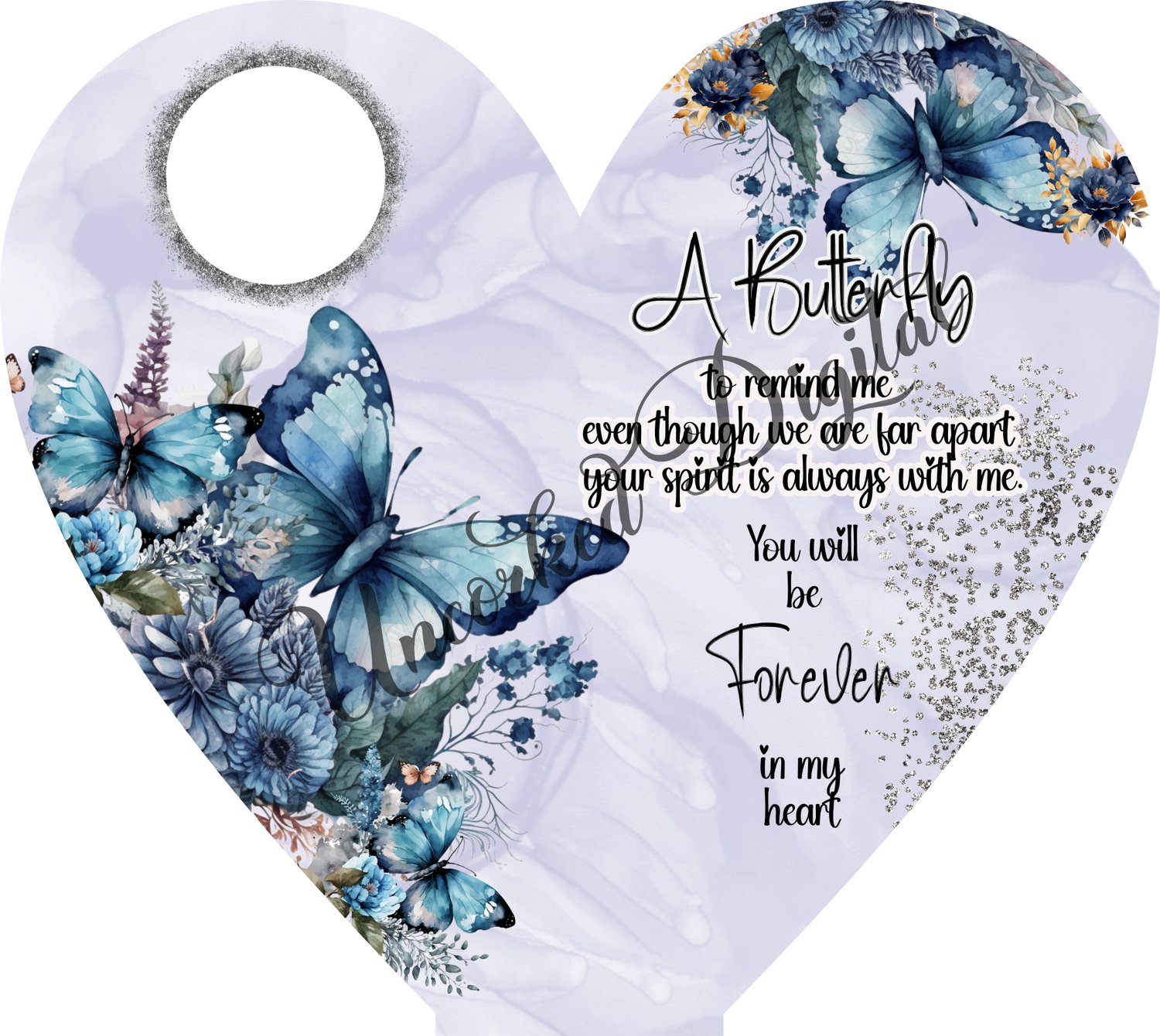 "A butterfly" memorial design to fit the 15cm hearts with heart base from Woodform Crafts, comes in 3 colourways and all with and without photo space.